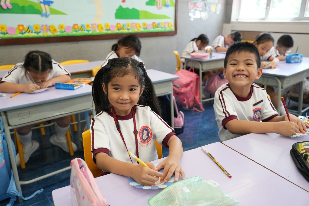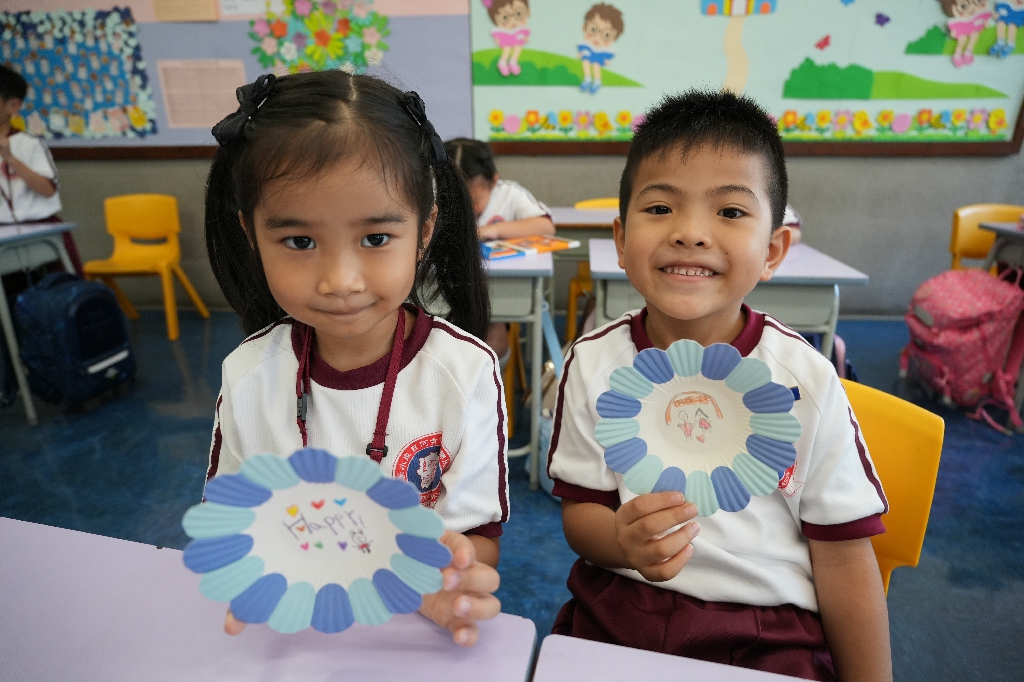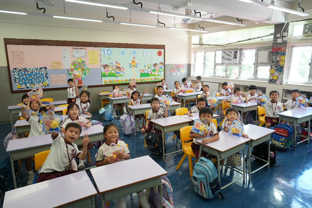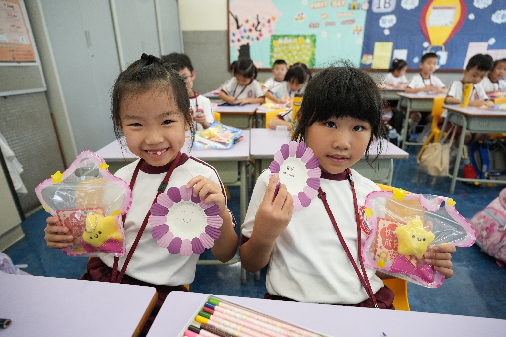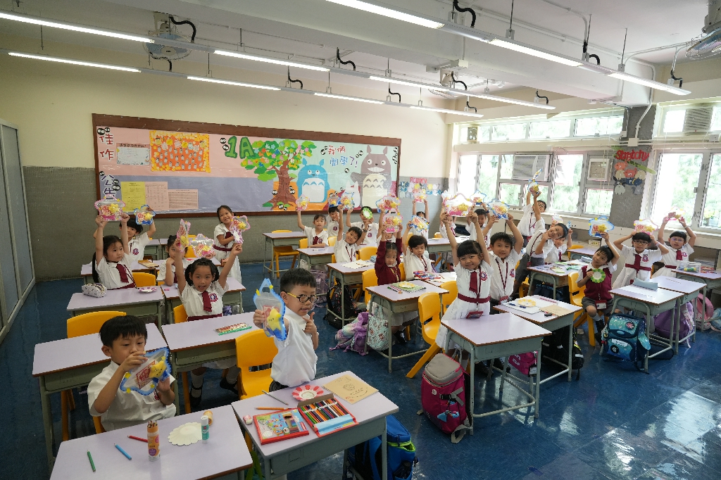 為了慶祝小一同學愉快地融入小學生活,本校輔導組為他們安排了「滿月禮」。當天小一同學懷著興奮的心情,在彩色的紙碟上,寫上支持句語和畫上喜愛的圖畫,互相鼓勵欣賞,增加同學的歸屬感。當日同學還收到一份可愛的小禮物,袋內有一顆星星,提醒他們每一位都是顆閃亮的星星,都有自己的閃光點,要努力發光發亮。