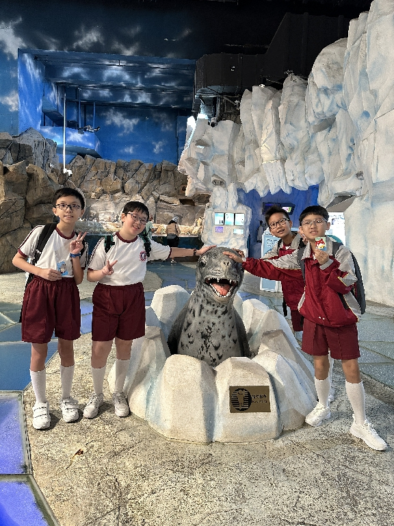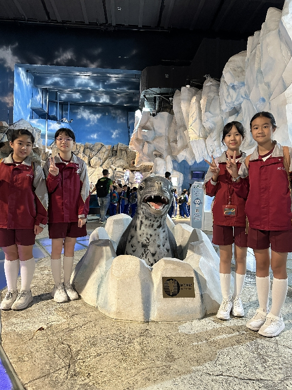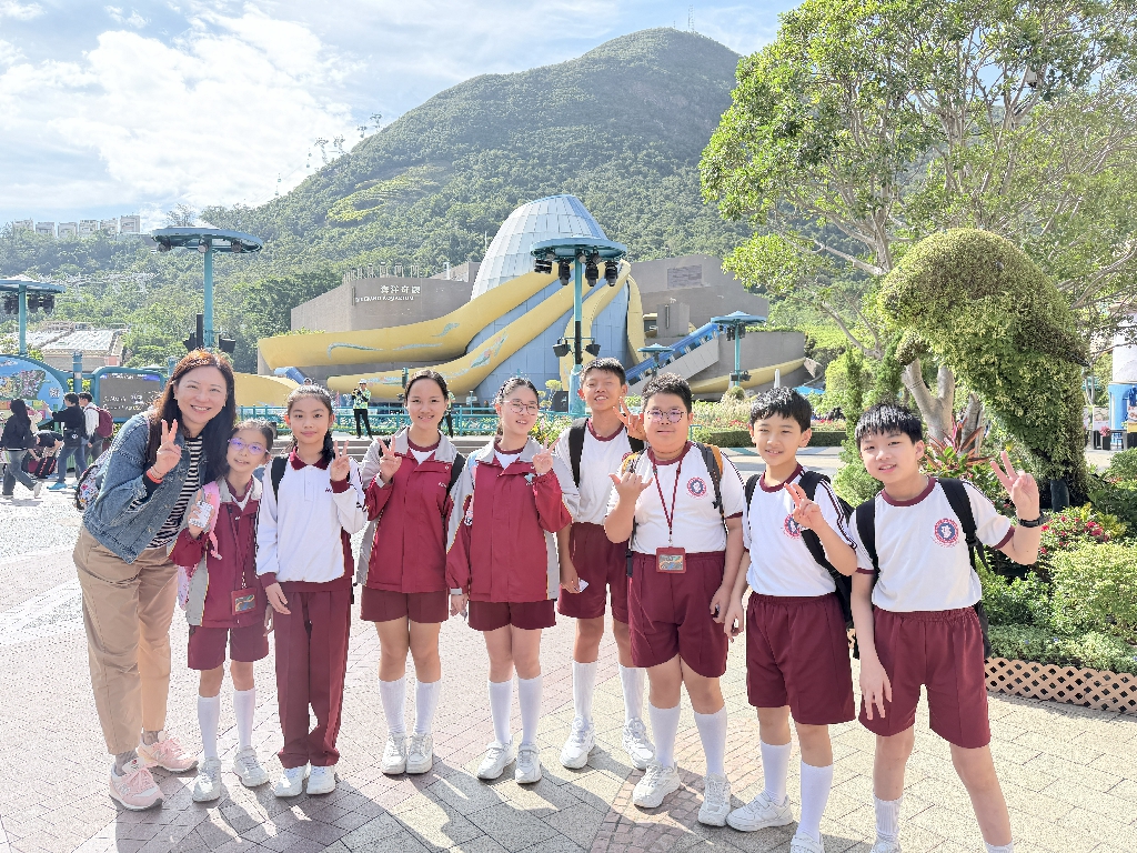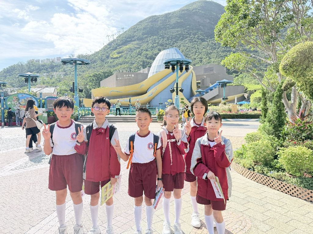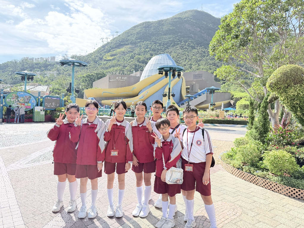為配合常識科課題:動物與環境,本校特意安排六年級學生於11月12日參加香港海洋公園「賽馬會大熊貓探索之旅」。透過參觀「大熊貓之旅」和「香港賽馬會四川奇珍館」,讓學生近距離接觸大熊貓龍鳳胎:加加和得得,以及樂樂、盈盈、安安和可可,認識保護大熊貓及其棲息地的方法;同學們更觀賞了各種海洋生物,明白海洋生態系統的重要性,提升環境保護意識。