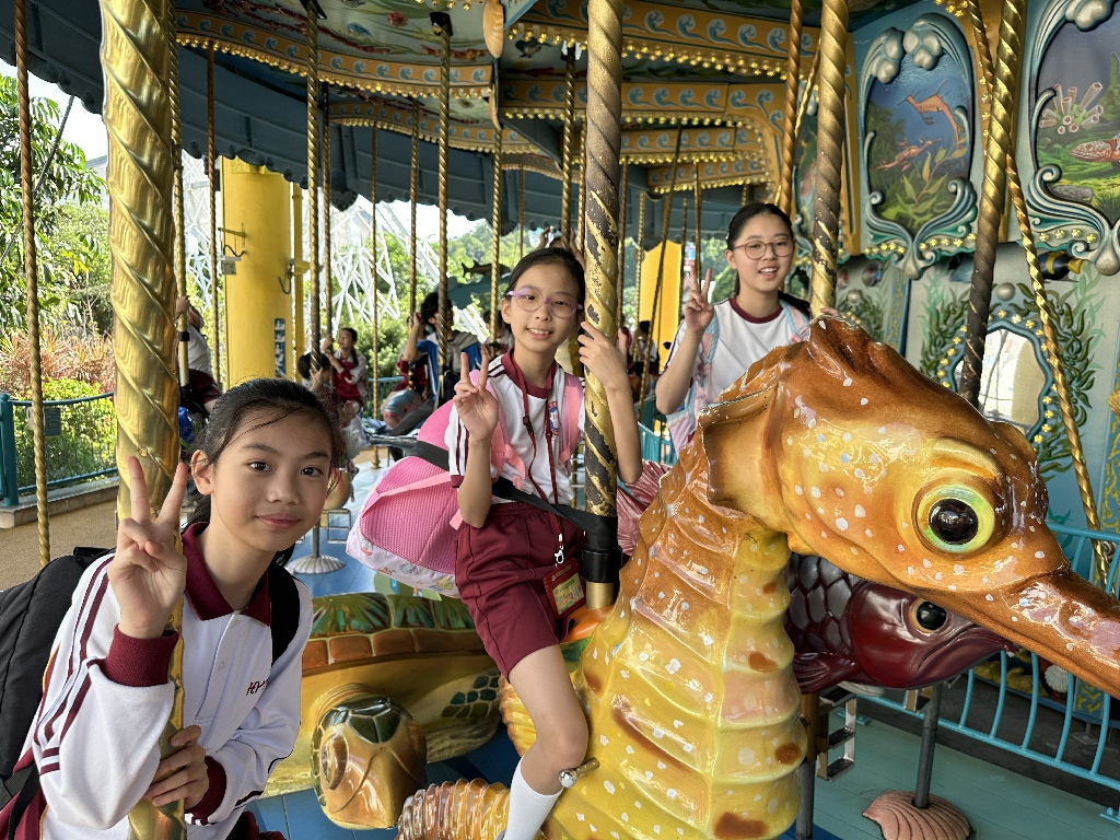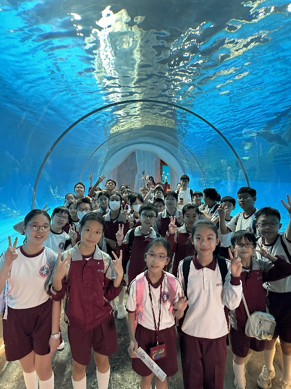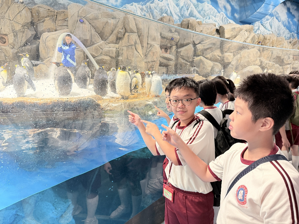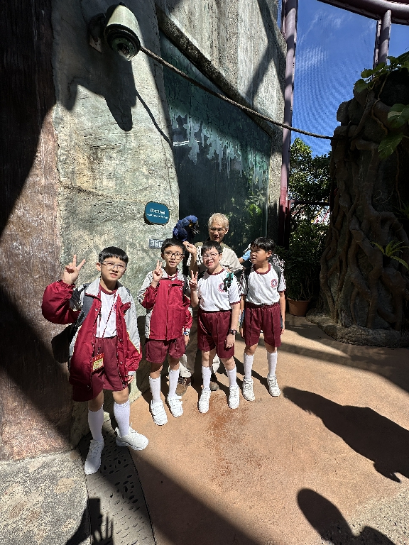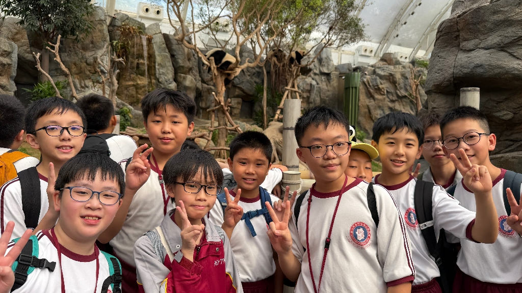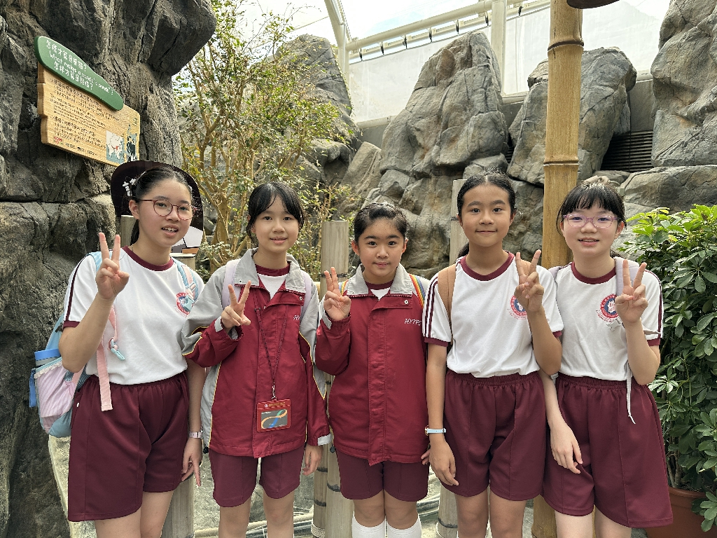 為配合常識科課題:動物與環境,本校特意安排六年級學生於11月12日參加香港海洋公園「賽馬會大熊貓探索之旅」。透過參觀「大熊貓之旅」和「香港賽馬會四川奇珍館」,讓學生近距離接觸大熊貓龍鳳胎:加加和得得,以及樂樂、盈盈、安安和可可,認識保護大熊貓及其棲息地的方法;同學們更觀賞了各種海洋生物,明白海洋生態系統的重要性,提升環境保護意識。