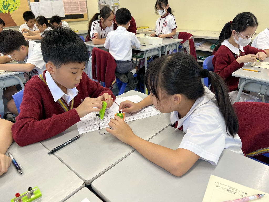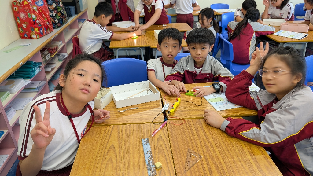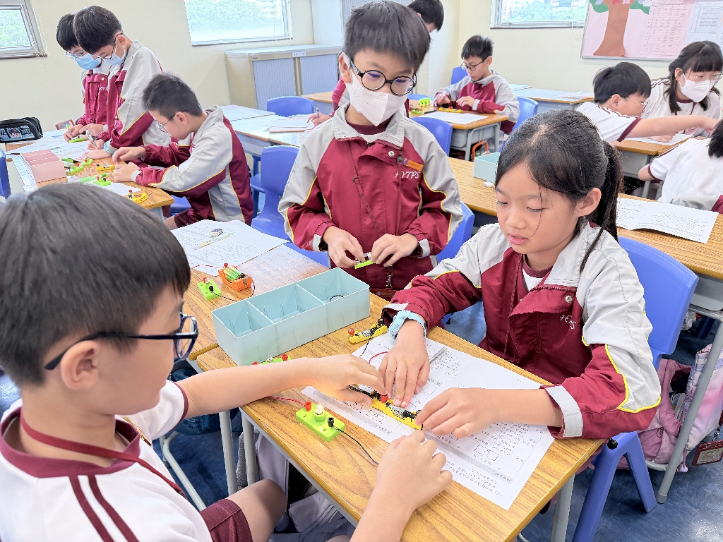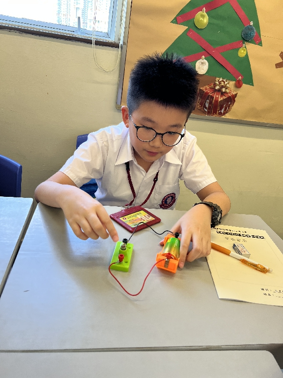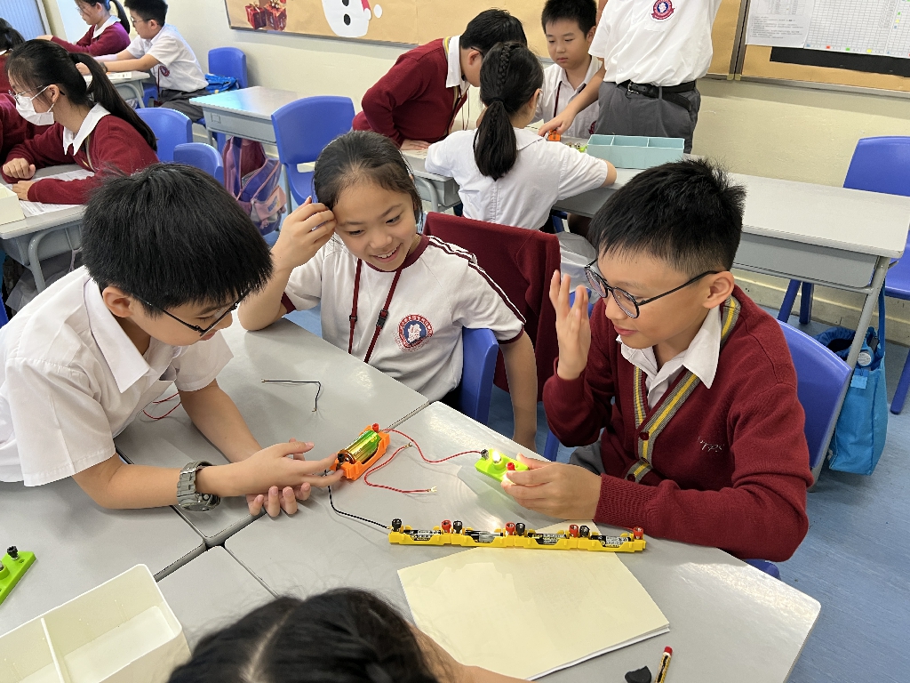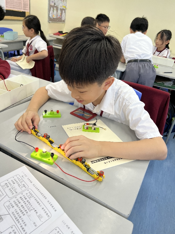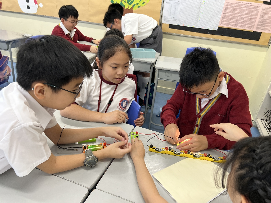 配合常識科課題「電的探究」及跨學科STREAM專題研習,學生分組進行實驗活動,在老師的引導下,學生學習閉合電路的科學原理。實驗活動中,學生手腦並用,認真學習。