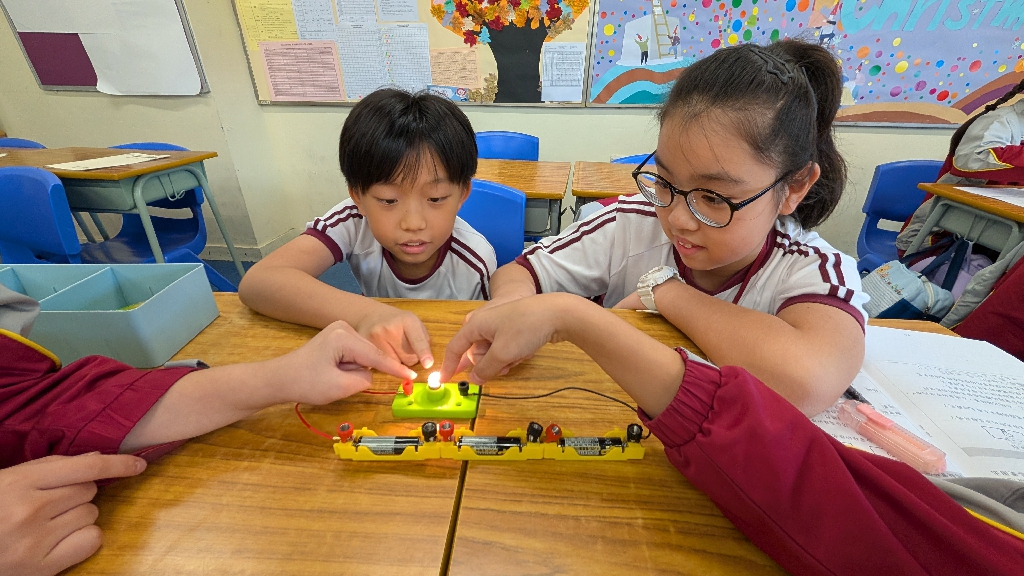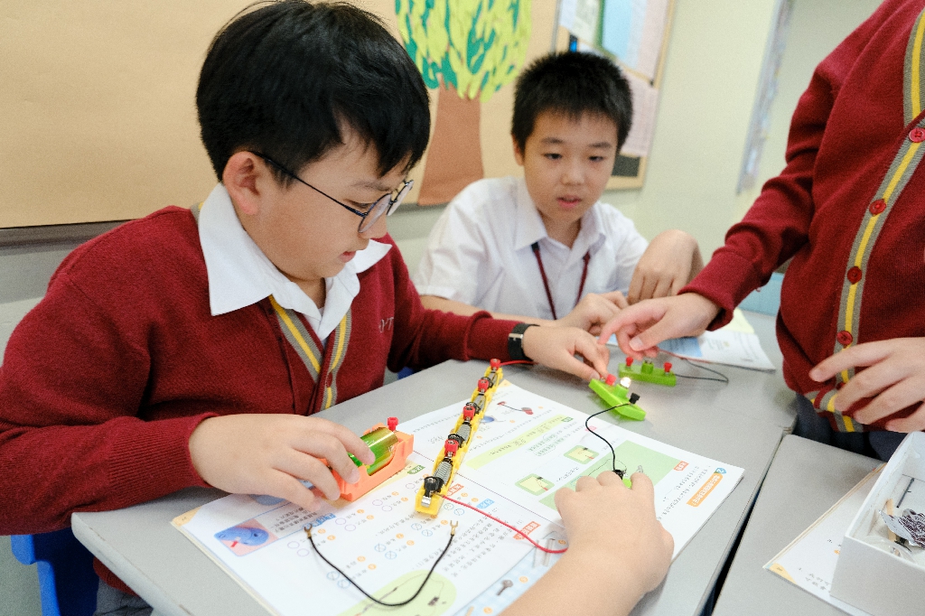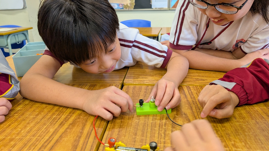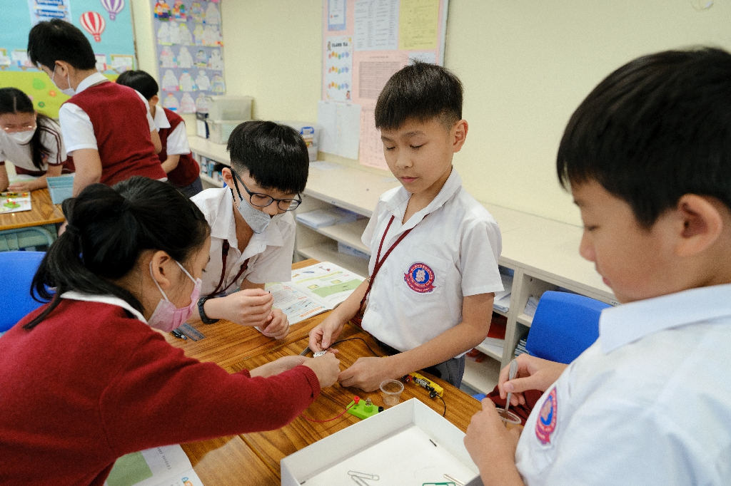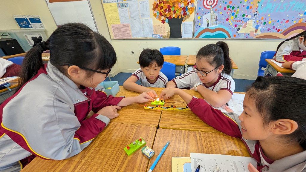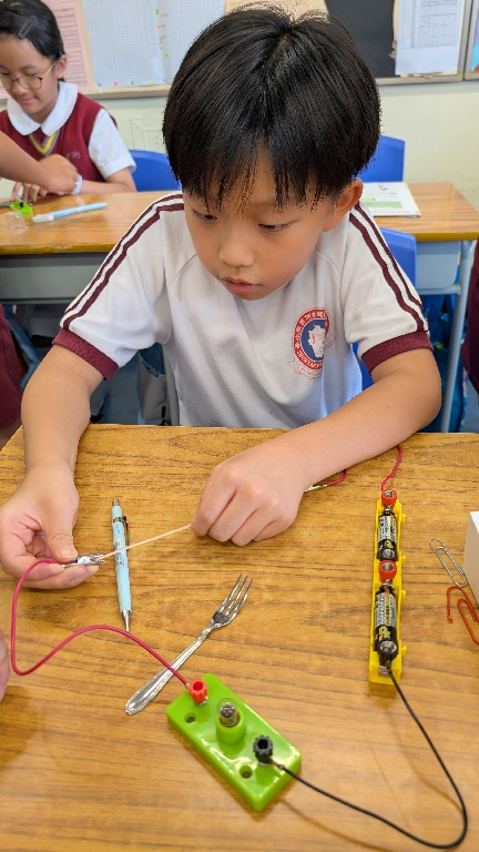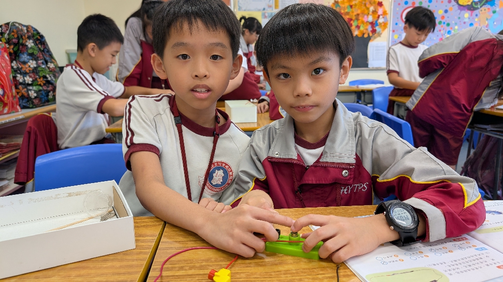 配合常識科課題「電的探究」及跨學科STREAM專題研習,學生分組進行實驗活動,在老師的引導下,學生學習閉合電路的科學原理。實驗活動中,學生手腦並用,認真學習。