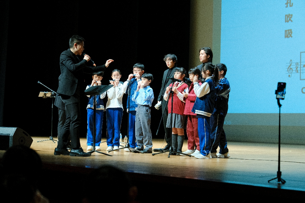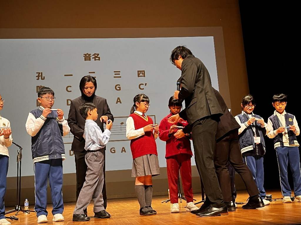 四年級全體同學於11月27日(星期四)前往屯門大會堂演奏廳參加何卓彥 x Perfect Fourth「簧域展開」口琴導賞音樂會。同學們沉浸式欣賞了風格多樣的口琴演奏曲目,充分感受口琴音樂的獨特魅力。其間,音樂家通過講解與互動體驗,向同學們系統科普了口琴的起源、種類及演奏技巧,有效拓寬了學生的藝術視野,進一步提升了音樂素養。值得一提的是,我校兩位同學和他校的數位學生有幸被現場挑選,在音樂家的指導下即場學習口琴基礎演奏技巧,並與演奏家同台合作演出,充分展現了我校學生的自信心與學習能力,獲得現場師生及藝術家的一致好評。