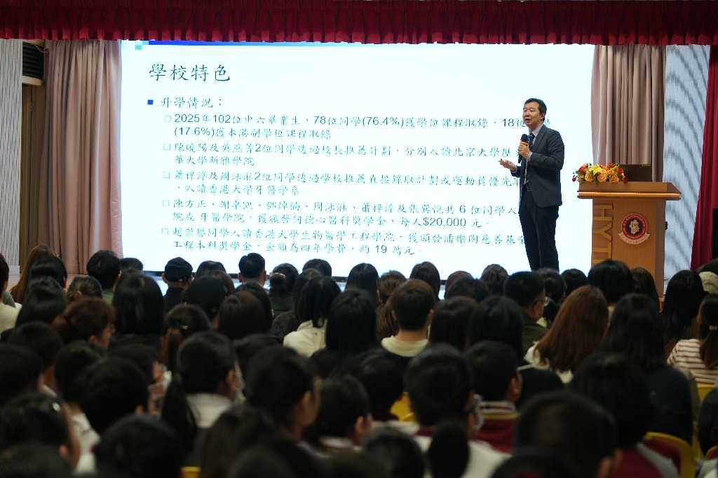 中學是人生一個重要的學習旅程,2024/26年度中學學位分配即將展開。為使六年級家長對「自行分配學位」和「統一派位」兩個階段之學位分配有更深的了解,本校於12月11日(星期四)舉行「小六升中座談會」,由張美儀校長為六年級家長及學生解說升中派位制度。為着增加六年級學生及家長對本區兩所會屬中學的認識,我們特意邀請梁銶琚中學英佩詞校長及譚伯羽中學尹仲其校長,於百中撥冗出席本校舉辦的小六升中講座,親自向大家講解辦學概況及最新的中學生活動態,使座談會更具意義。