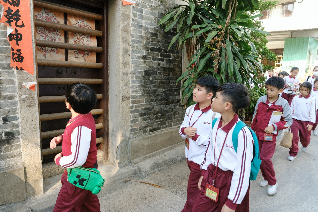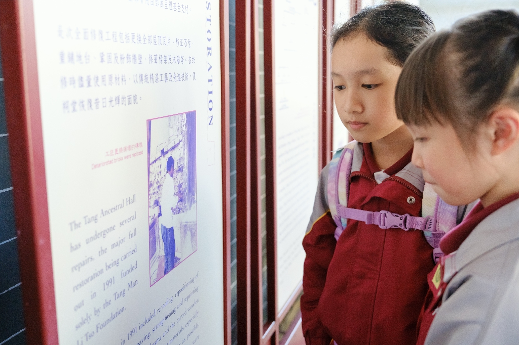 為配合人文科四年級「宋、元放大鏡」單元教學內容,老師帶領四年級學生走出教室,深入圍村,穿過窄巷,來到鄧氏宗祠、覲廷書室等古蹟前,探索昔日原居民的生活面貌。通過屏山文物徑參觀活動,同學們了解到宋朝時期的香港面貌,並加深了對中國傳統文化的認識!