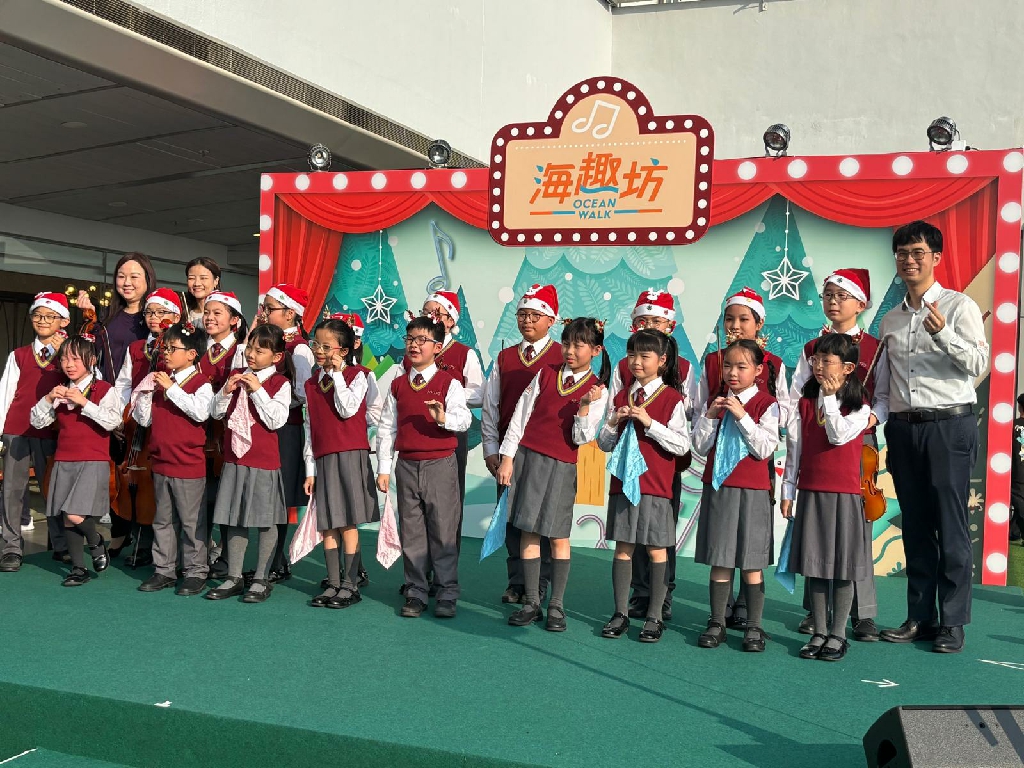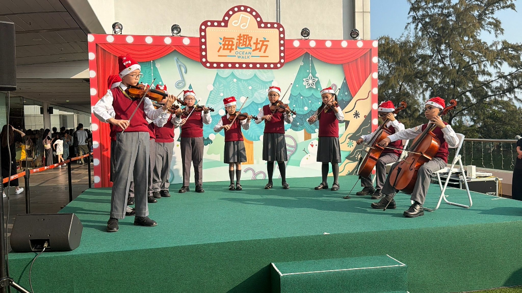 活動當日,弦樂團與10位初級合唱團成員們精神飽滿,以專業的姿態登臺表演。現場掌聲此起彼伏,屯門區的居民們駐足聆聽,紛紛拿出手機記錄這温馨時刻。樂聲與歌聲交織,不僅為商場營造出濃厚的聖誕節慶氛圍,更向屯門區居民傳遞了來自本校師生的節日問候與美好祝福。