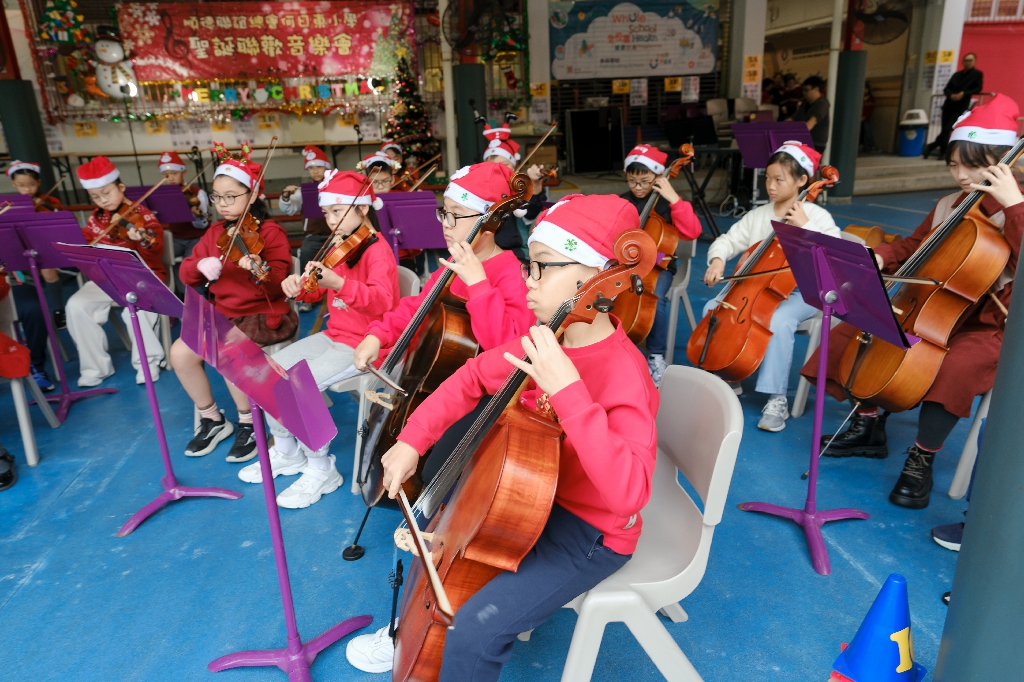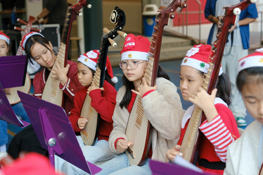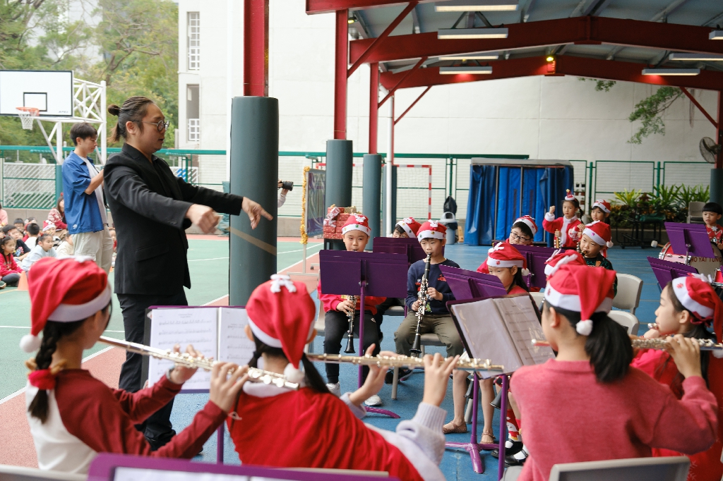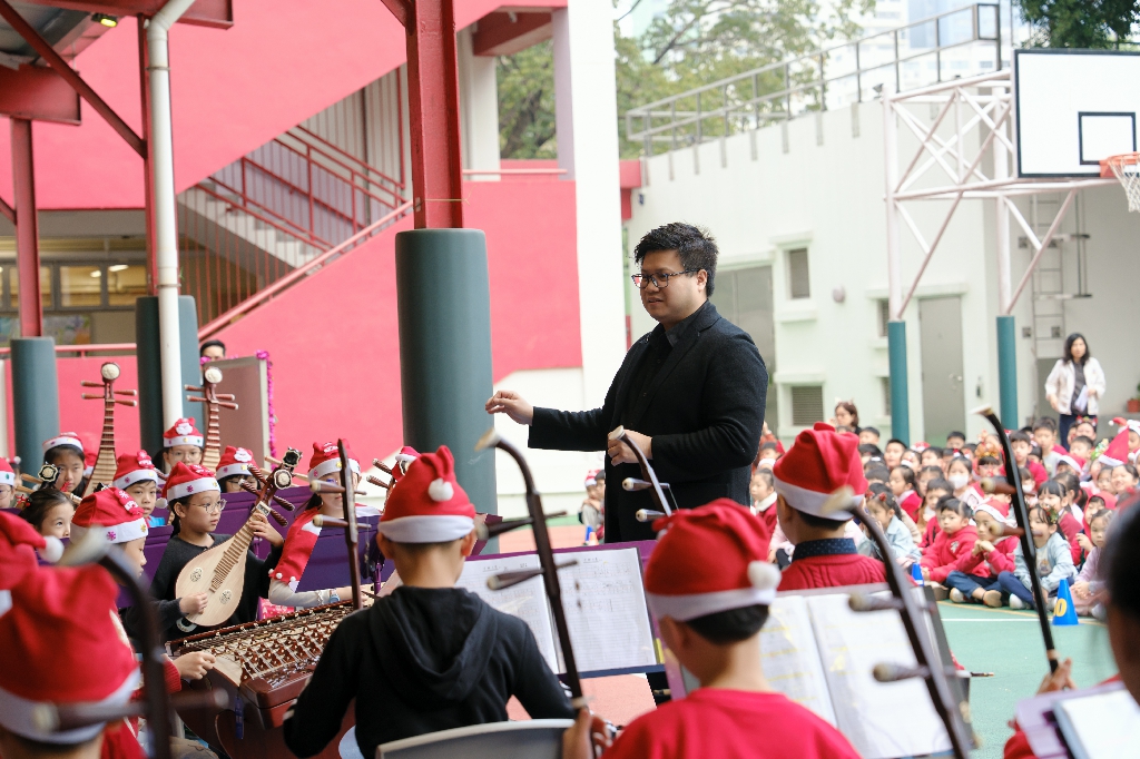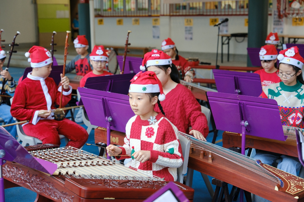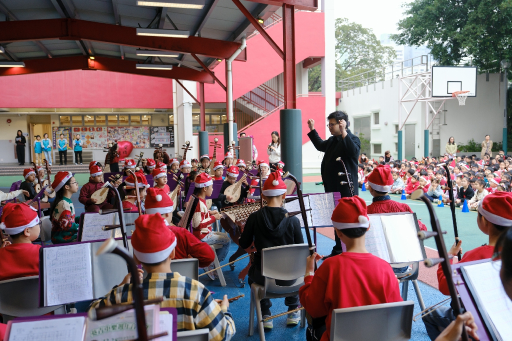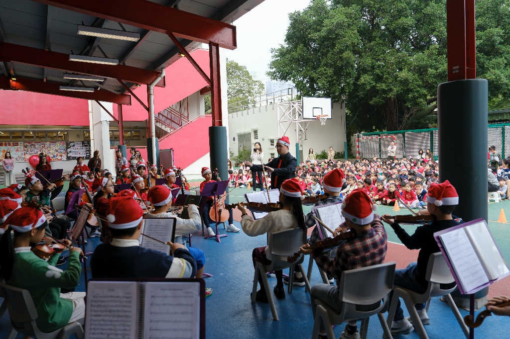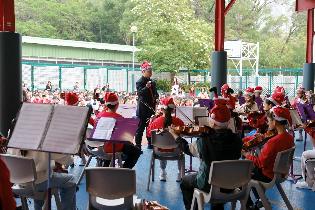 又到聖誕! 又到聖誕! 學生期待的聖誕音樂會終於來臨。當天全體師生在操場參與「聖誕音樂會」。今年主題為「感恩.關愛」,音樂會內容豐富,有中樂團、管樂團、弦樂團、初級及高級合唱團的學生為大家表演美妙的聖誕樂章,展現本校藝術教育的豐碩成果。