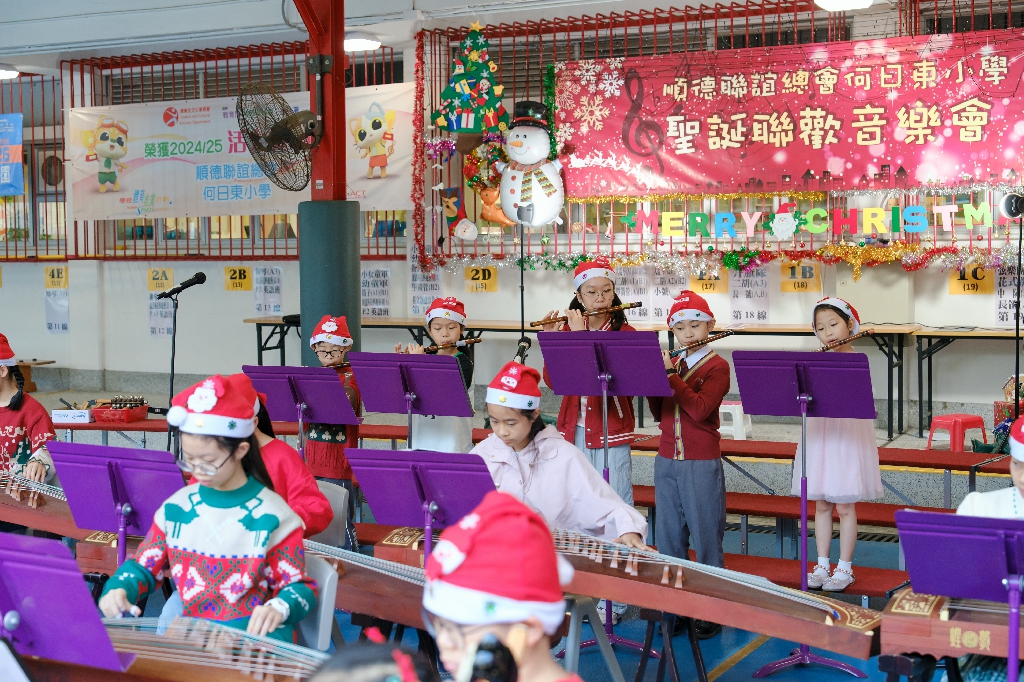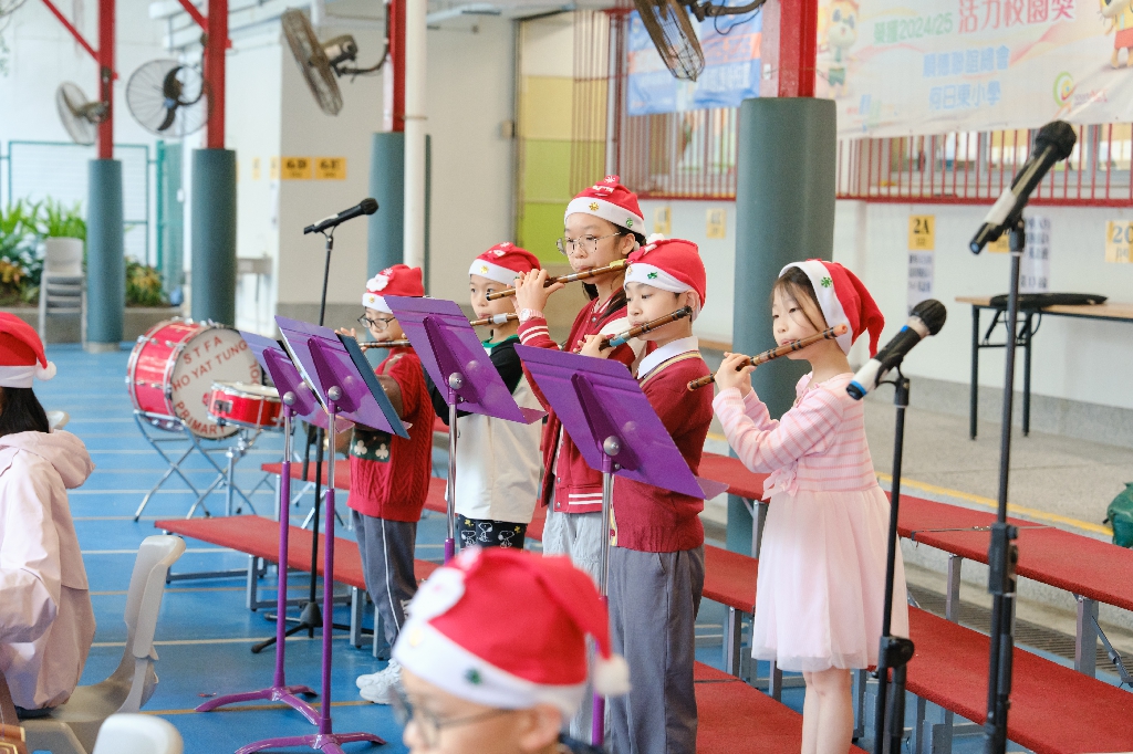 學生都十分投入參與活動及欣賞表演。除了精彩的表演環節外,還有趣味遊戲互動、聖誕老人和師生一起跳舞助慶,最後全校師生一起大合唱聖誕歌We Wish You a Merry X’mas,互相祝福,將聖誕氣氛推致高峰,學生投入及積極參與。精彩的音樂會後,師生一起在課室舉行聖誕派對及遊戲,共渡一個充滿感恩.關愛的聖誕!