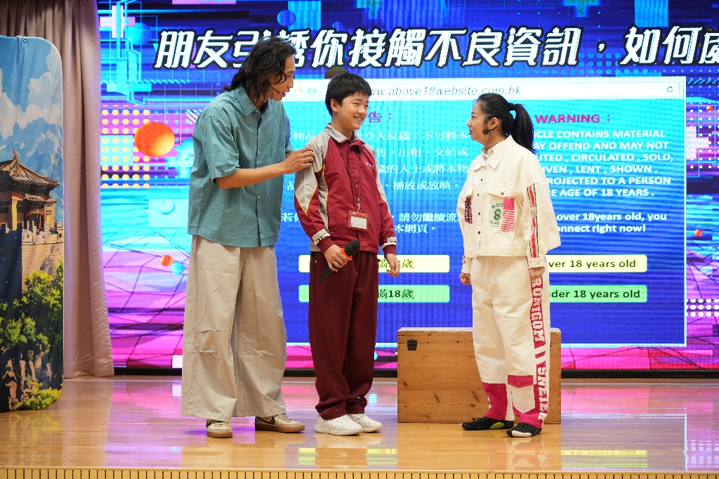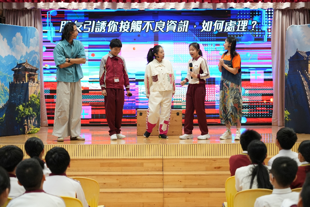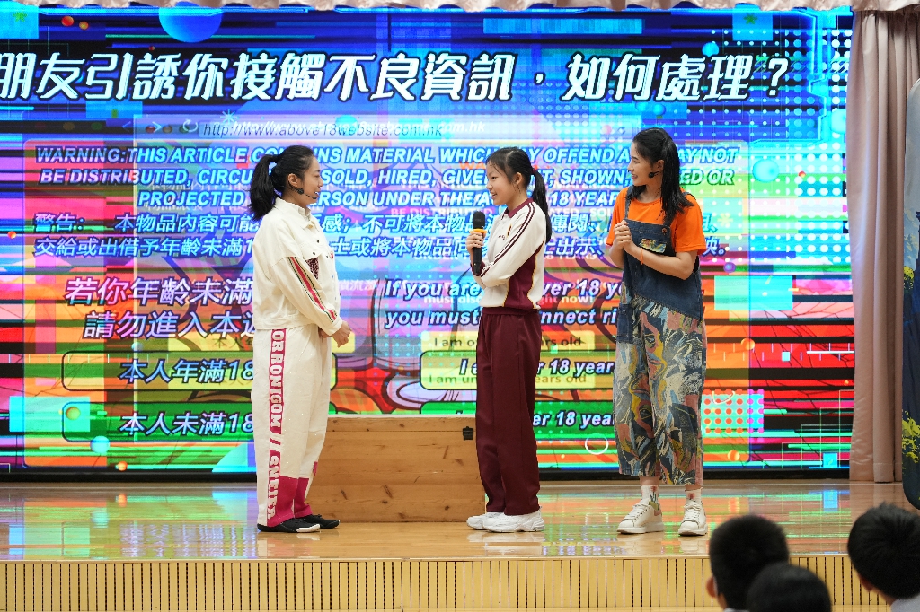 五年級和六年級於午休和英讀時段欣賞由香港特別行政區政府電影、報刊及物品管理辦事處主辦,春天實驗劇場主演的教育短劇巡迴表演——《齊享健康資訊》互動教育劇場,學生踴躍參與,積極互動,收穫豐碩,明白要拒絕不良資訊的訊息的方式和重要。