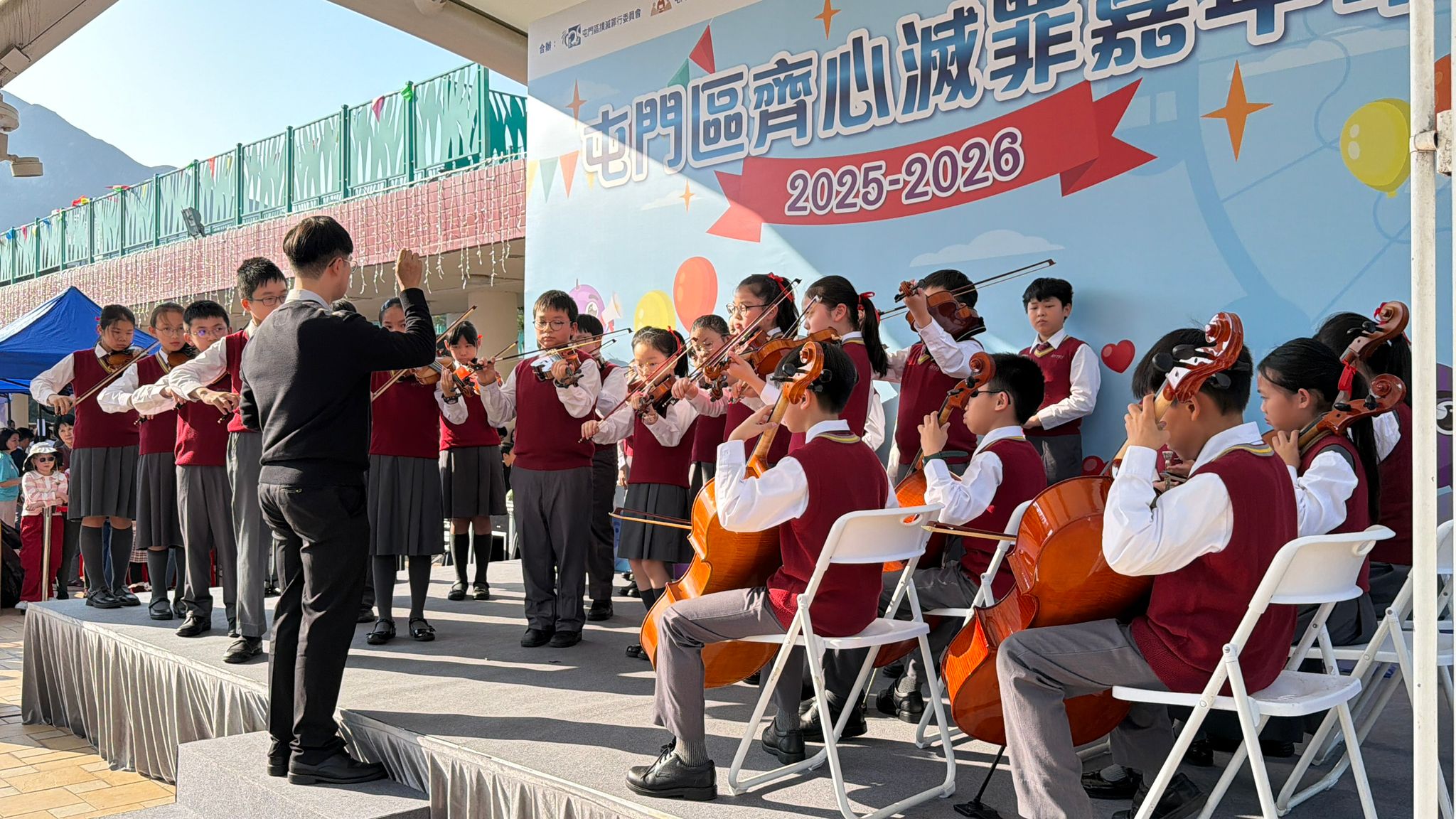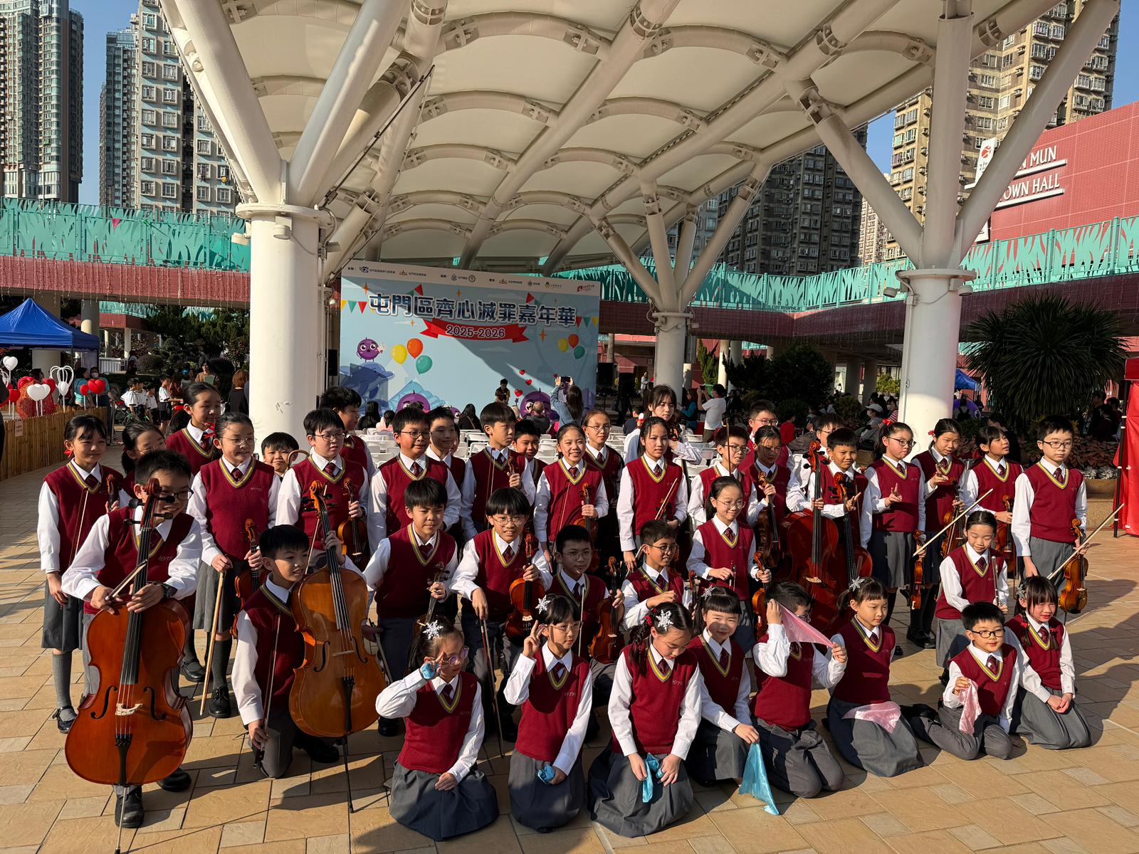 本校管弦樂團及合唱團於1月18日獲屯門區撲滅罪行委員會邀請,參與「屯門區齊心滅罪嘉年華」綜藝表演。當日由人才濟濟的管弦樂團演奏動人的古典樂章及可愛的合唱團成員演唱優美的歌曲,得到現場觀眾及家長熱烈的掌聲,同學們共聚一個有意義及發放正能量的表演活動。