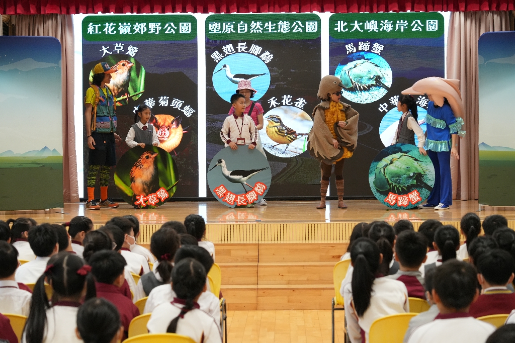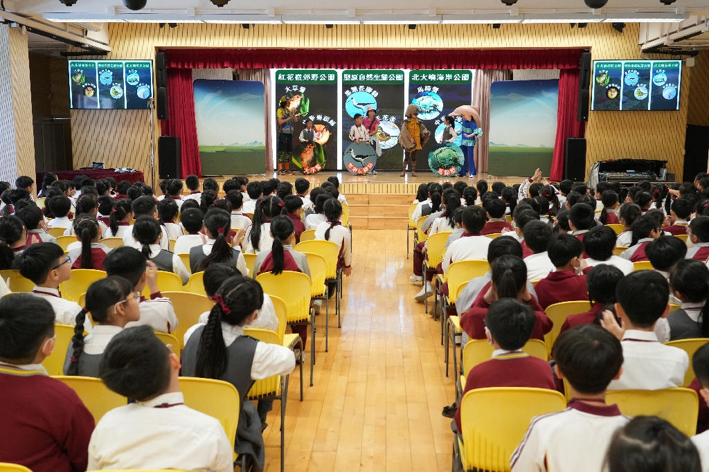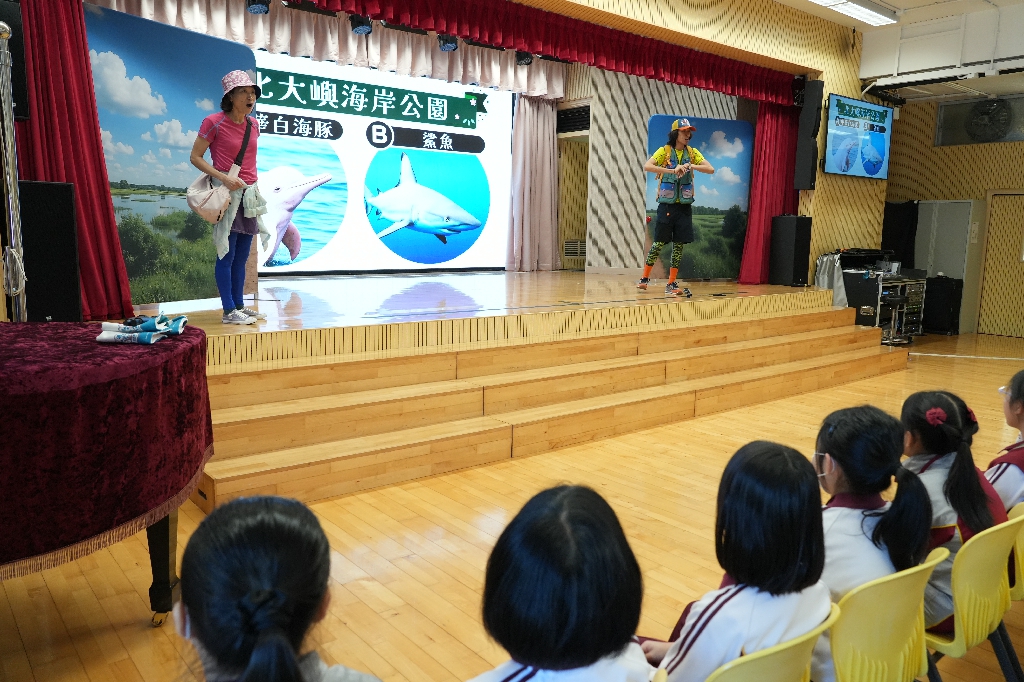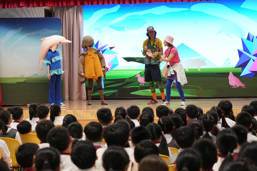 為讓同學了解自然保育及生物多樣性,本校於2月5日參與「環境及生態局」主辦的可持續發展學校(小學)外展計劃,邀請了「黑暗劇場」到校演出互動話劇《超現實生態遊》,讓學生透過話劇認識香港瀕危物種,培養同學愛護動物及大自然的環保意識。
