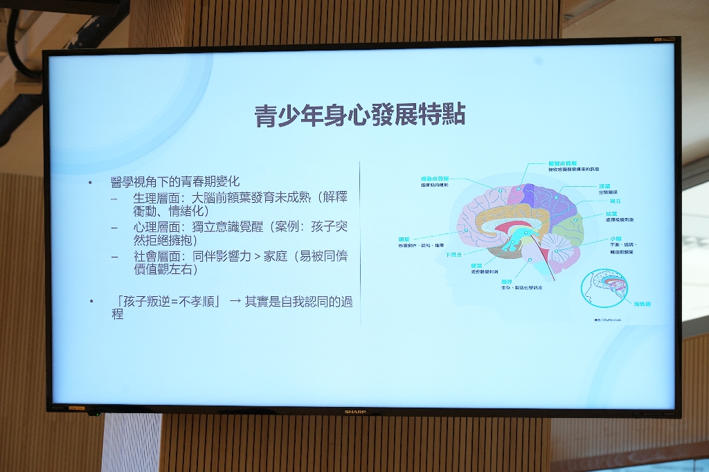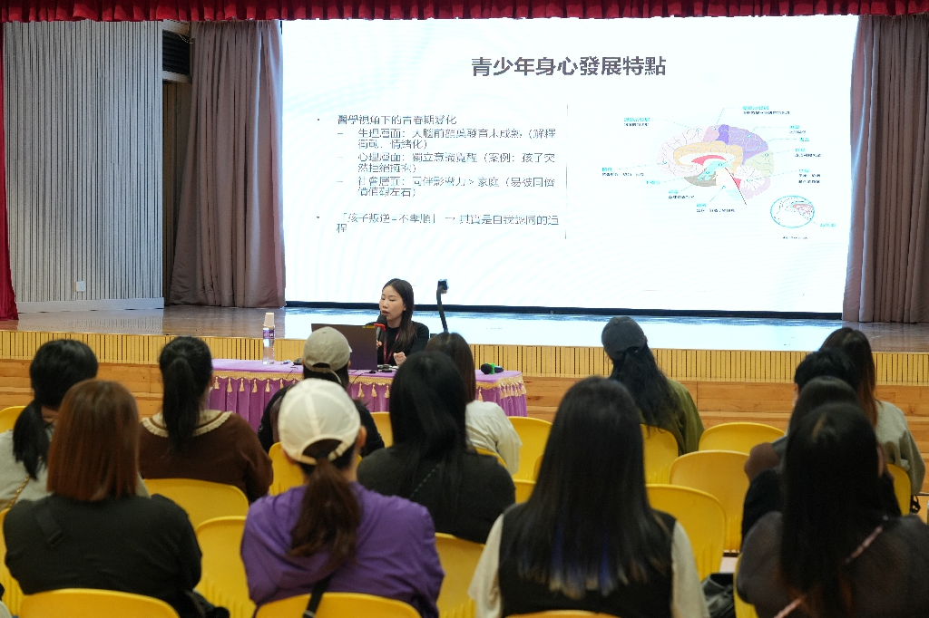 本校邀請了精神科專科醫生陳奕彤女士講解有關青少年的心理和行為特點;分享如何有效地運用溝通策略來面對與子女之間的相處,從而建立親子之間的信任和支持,減少出現衝突或關係疏離的局面,並為家長提供有用資源與求助途徑。