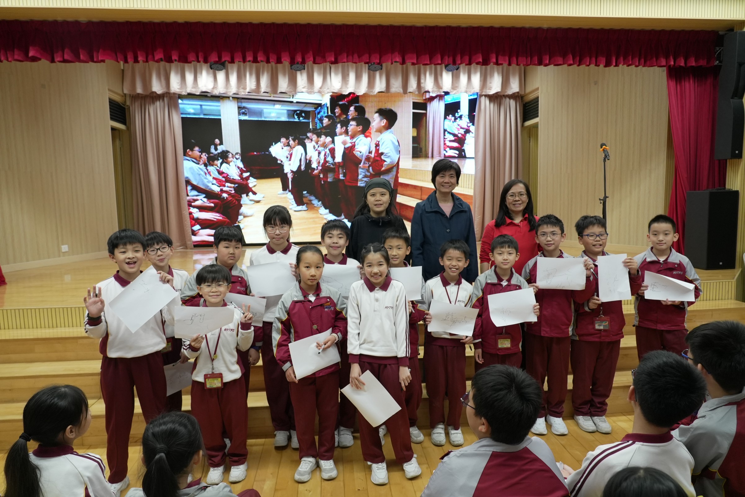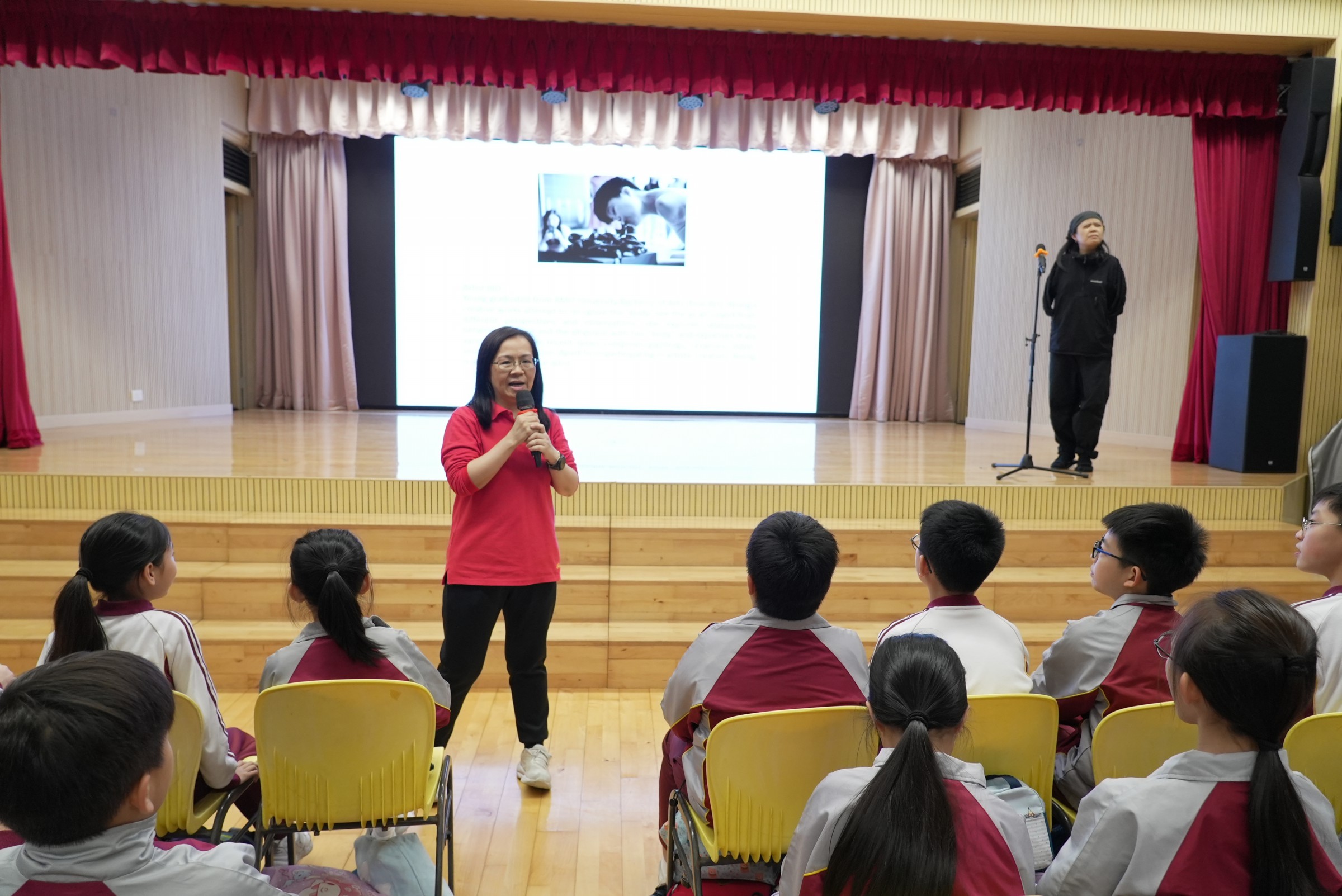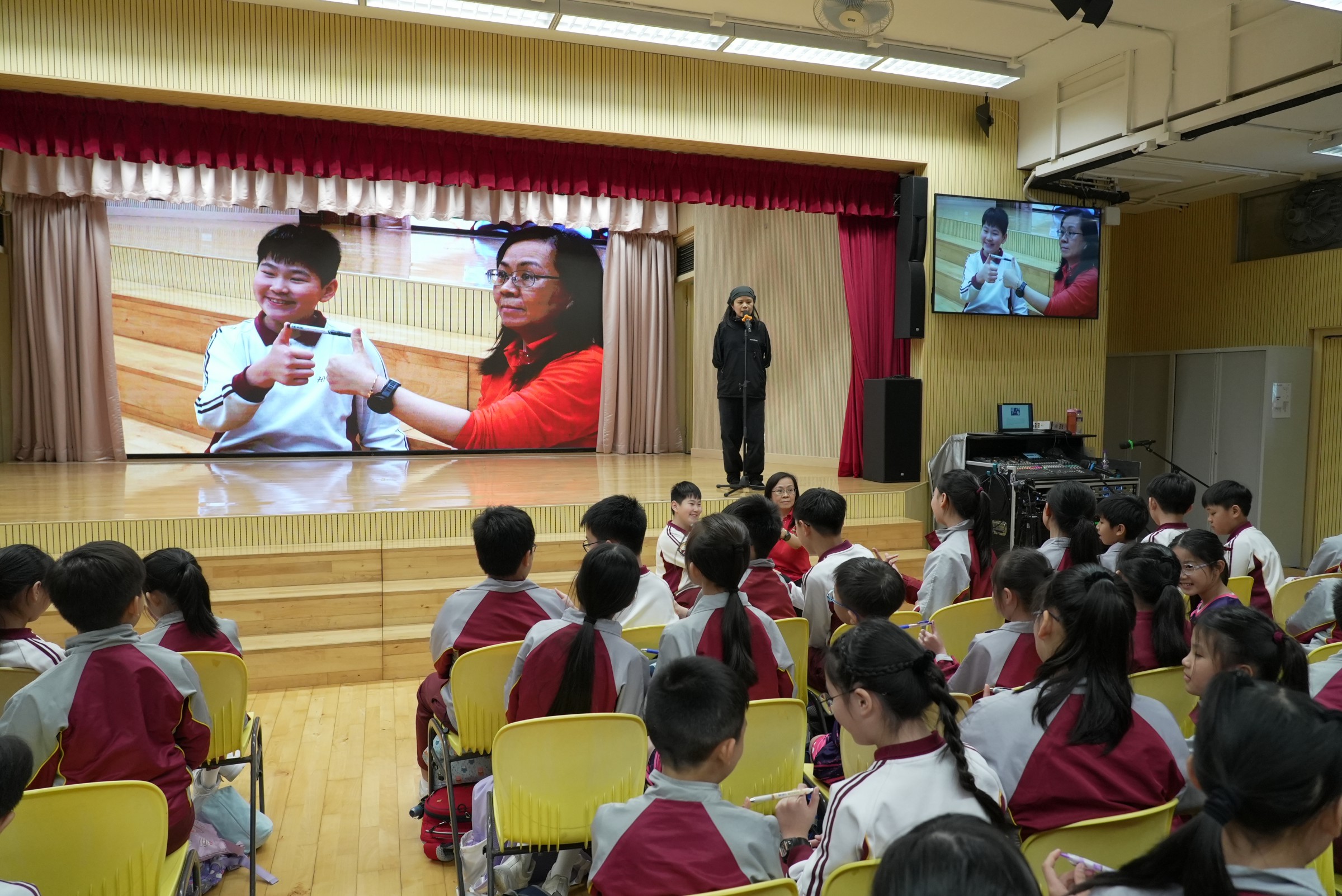 本校於3月9日11日邀請楊小芳小姐到校為全校學生舉行「《足以自豪》運動員及藝術家楊小芳小姐分享會—芳夢飛翔」,透過其成長經歷,包括:因8歲遇上一次意外引致失去雙手的經過、克服接受醫療的過程、在香港讀書的經歷、從小父母親鼓勵學會照顧自己、面對日常生活的挑戰、接受專業運動的訓練代表香港出戰亞洲運動會和用雙腳開啟藝術創作的經歷等,鼓勵學生積極面對人生。透過體驗活動,學生除了可以感受限制雙手活動的困難外,更學會與人合作和團結的重要。為表達感謝楊小芳小姐到校分享豐富珍貴的人生經驗,展現堅毅和正能量,四至六年級學生獻唱綜藝表演會主題歌曲(Spark of Me),並配以兩位六年級學生用結他及木箱鼓伴奏,以生命影響生命,場面十分感動,學生也獲益良多。