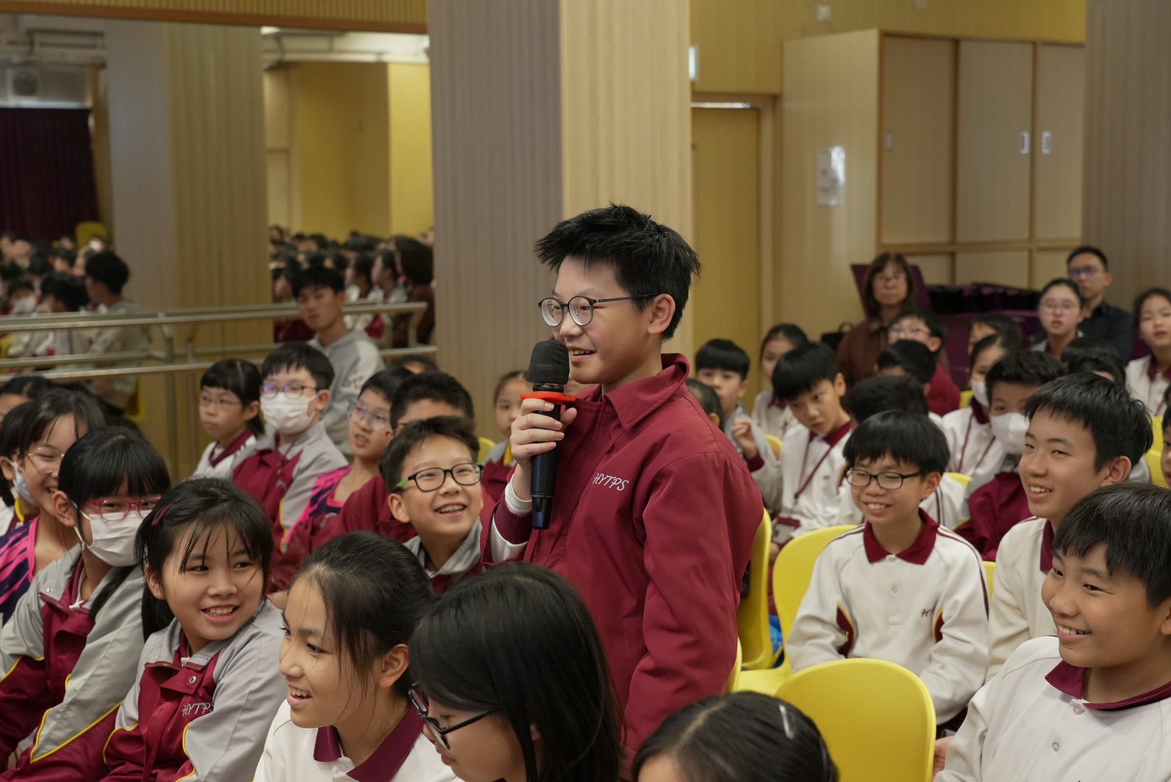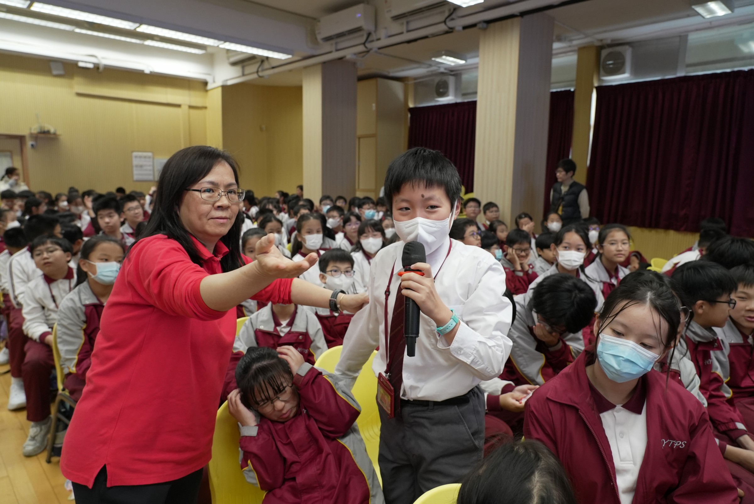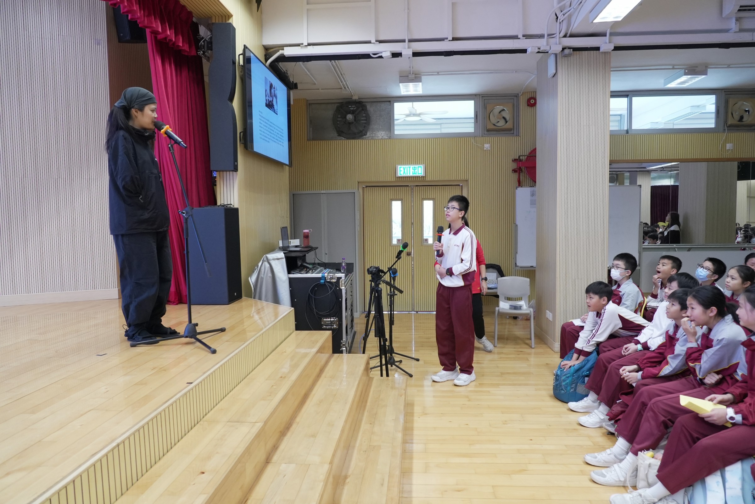本校於3月9日11日邀請楊小芳小姐到校為全校學生舉行「《足以自豪》運動員及藝術家楊小芳小姐分享會—芳夢飛翔」,透過其成長經歷,包括:因8歲遇上一次意外引致失去雙手的經過、克服接受醫療的過程、在香港讀書的經歷、從小父母親鼓勵學會照顧自己、面對日常生活的挑戰、接受專業運動的訓練代表香港出戰亞洲運動會和用雙腳開啟藝術創作的經歷等,鼓勵學生積極面對人生。透過體驗活動,學生除了可以感受限制雙手活動的困難外,更學會與人合作和團結的重要。為表達感謝楊小芳小姐到校分享豐富珍貴的人生經驗,展現堅毅和正能量,四至六年級學生獻唱綜藝表演會主題歌曲(Spark of Me),並配以兩位六年級學生用結他及木箱鼓伴奏,以生命影響生命,場面十分感動,學生也獲益良多。