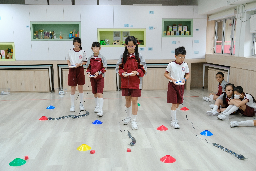本校獲創新科技及工業局數字政策辦公室小學「奇趣IT識多啲」計劃資助,舉辦資優培訓課程:「AI機械狗及氫能車班」,積極推動STEAM教育。學生透過富趣味的活動,例如組裝、編程及控制足球機械蛇、AI機械狗、循線機械智能小車及日本氫燃料電能車H2 Racer,學習創新科技及應用跨學科知識與技能,增強探索科學和科技的能力。