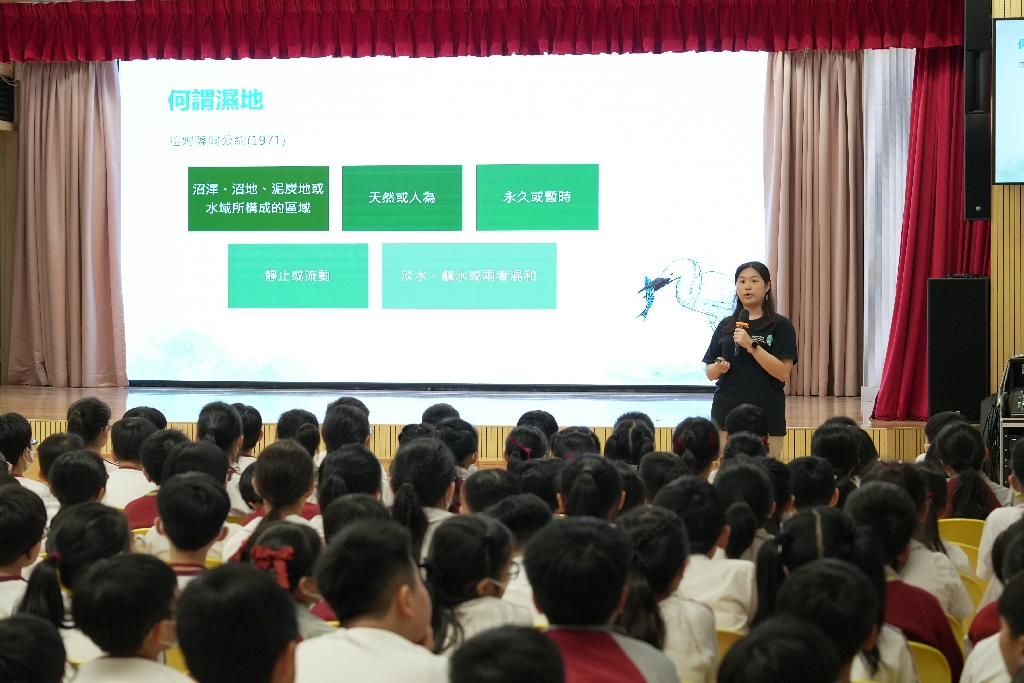 為了讓學生了解香港本地魚塘養殖過程及雀鳥生態、人類活動與大自然的互動關係,本校參加了由「香港濕地保育協會」及「香港管綫專業學會」主辦、「香港社建協會」協辦的「認識香港魚塘與濕地生態」專題講座,令師生們認識到生物多樣性和生態保育的概念,喚起大家對環境及可持續發展的關注。