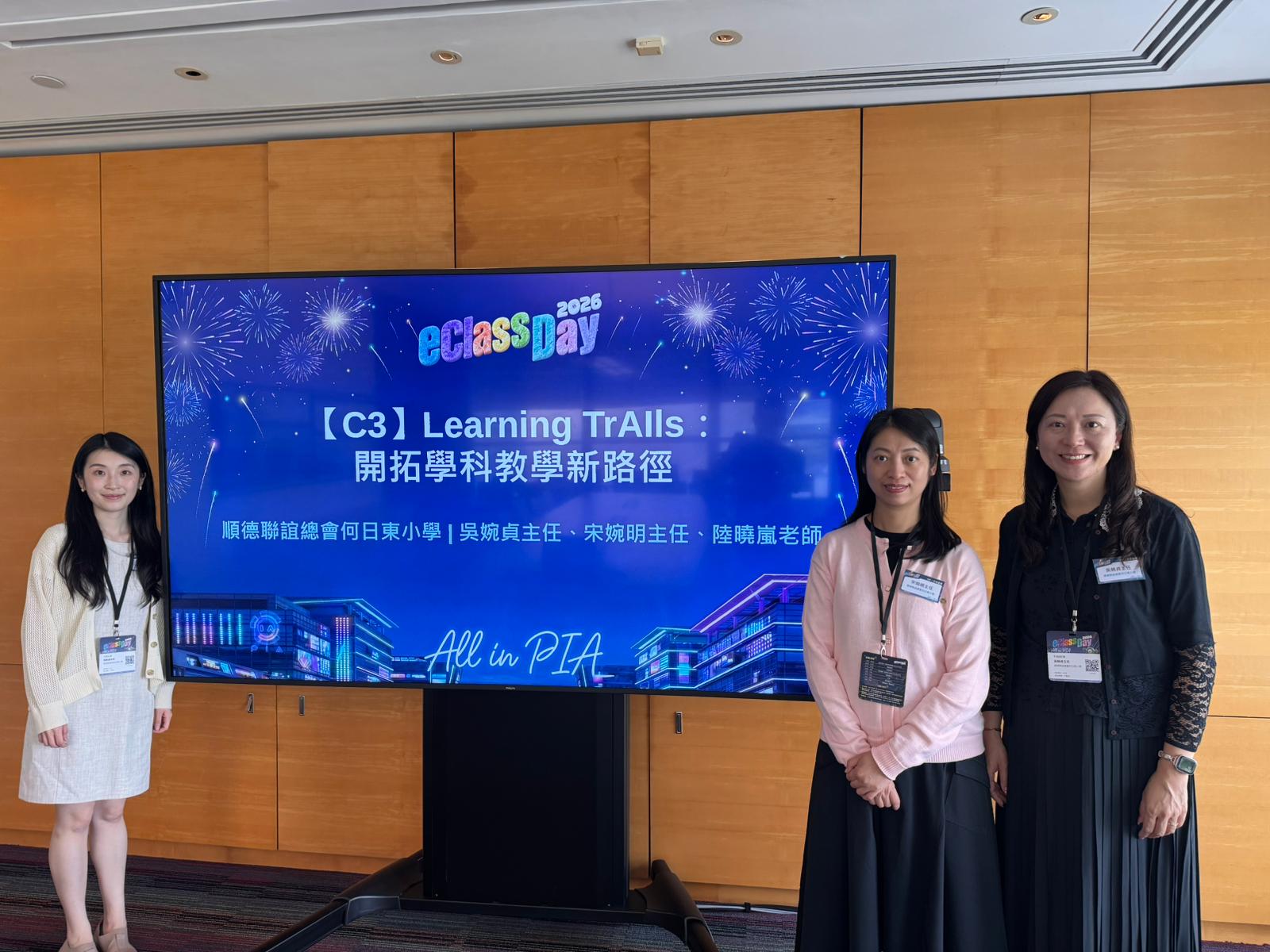 本校吳婉貞主任、宋婉明主任及陸曉嵐老師,獲邀出席4月18日假香港科學園舉行行的「eClass Day全港教師分享日」,代表本校向全港老師分享各科推行電子學習,促進學與教效能的情況;以及推展利用人工智能教學的策略,得到與會者的認同。