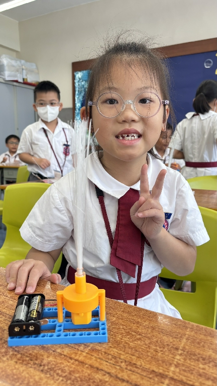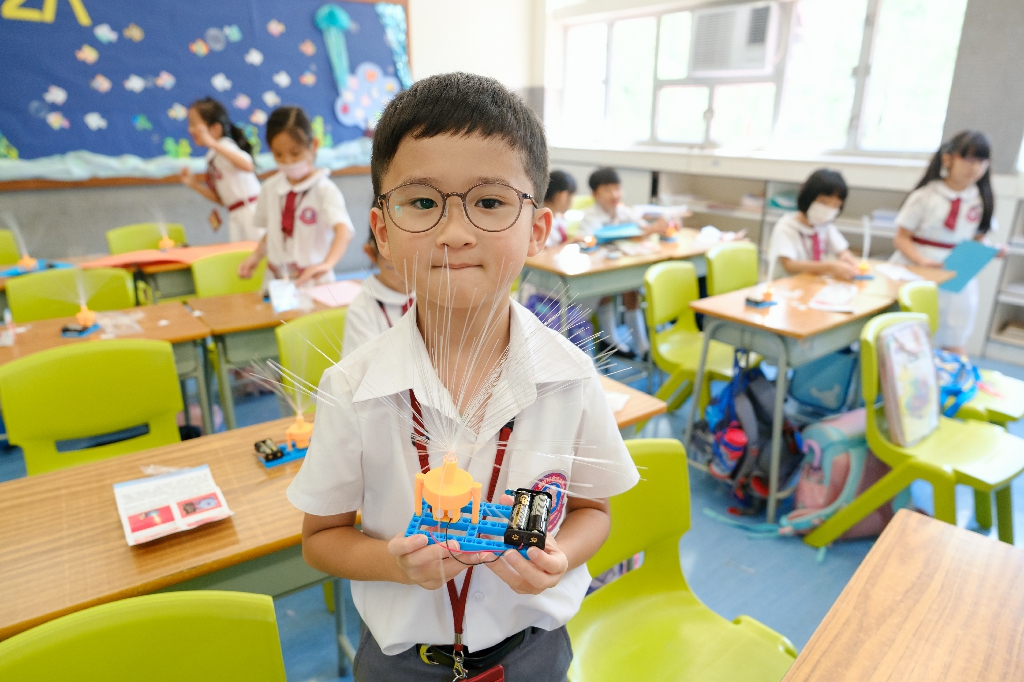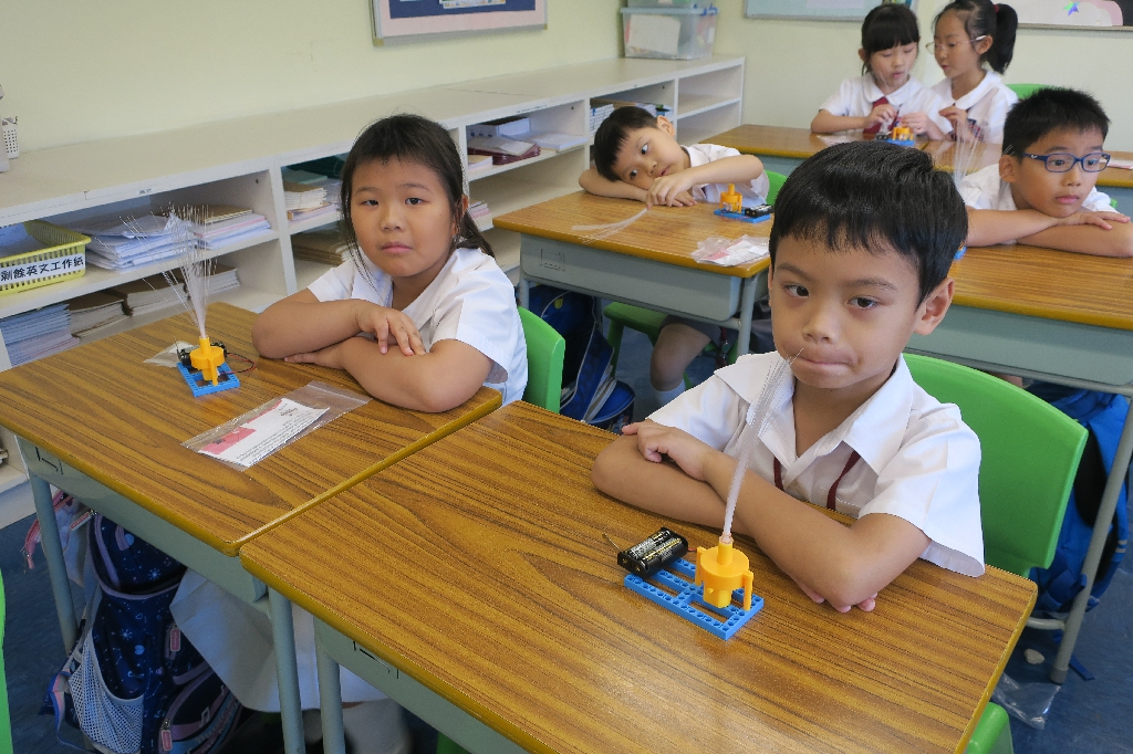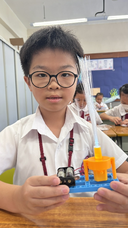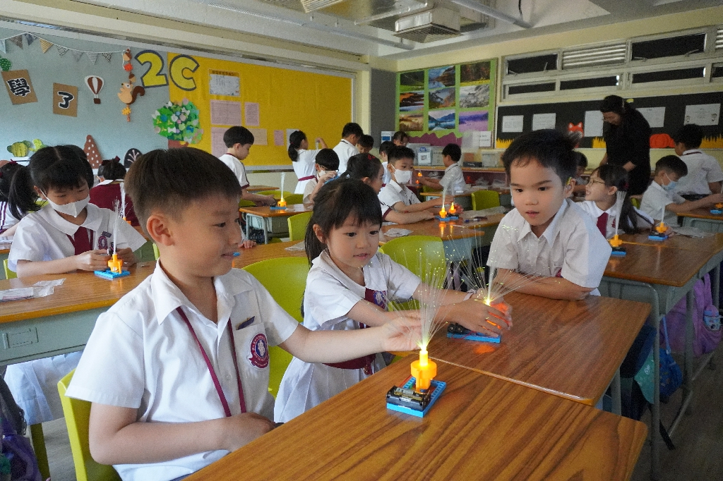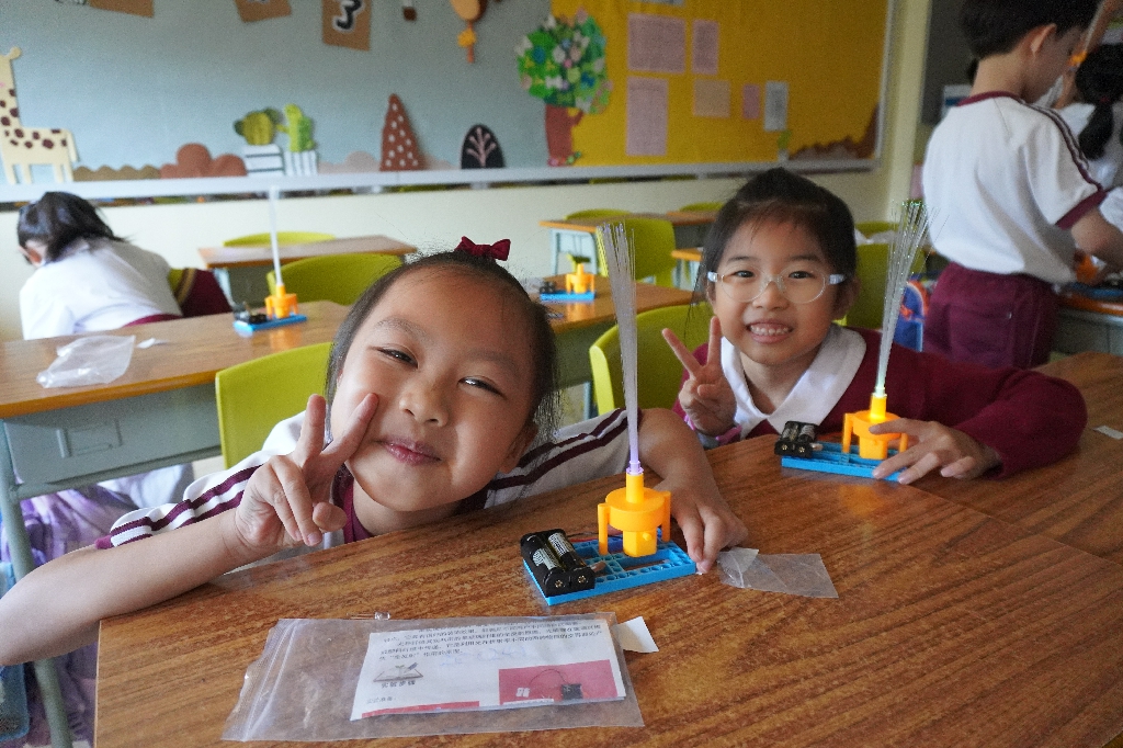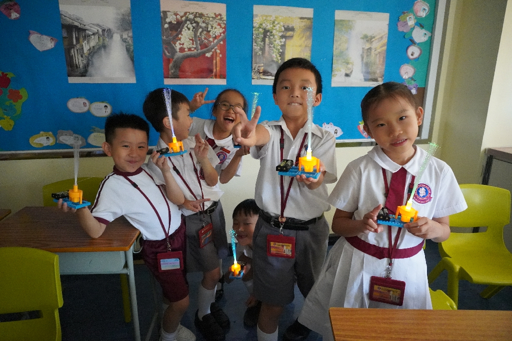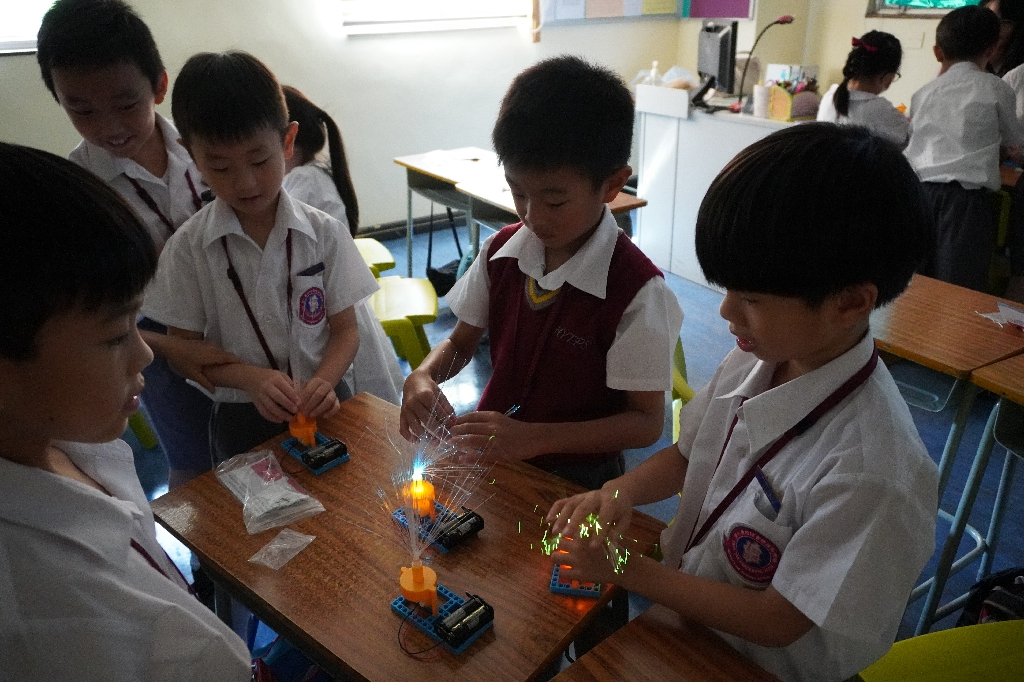 配合常識科課題:自製玩具,學生動手製作新奇有趣的七彩噴射燈,訓練思考和創造力,並學習能量轉換的科學原理。學生製作七彩噴射燈時能享受當中的樂趣。
