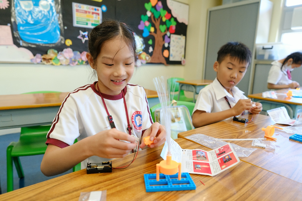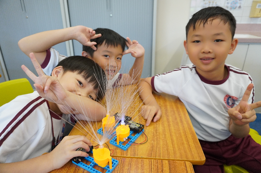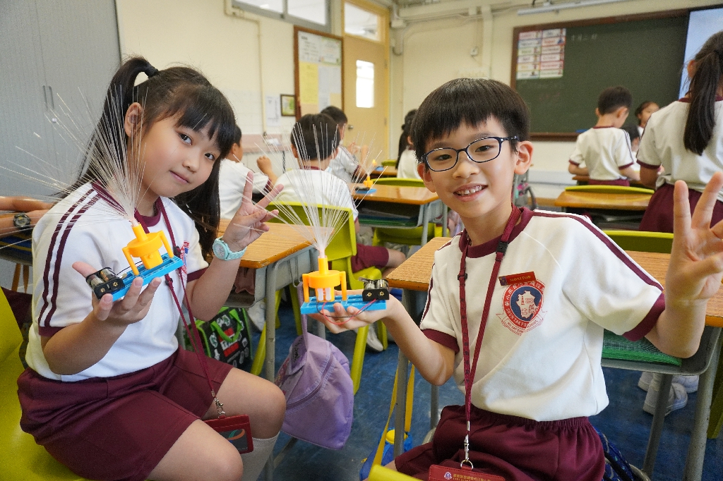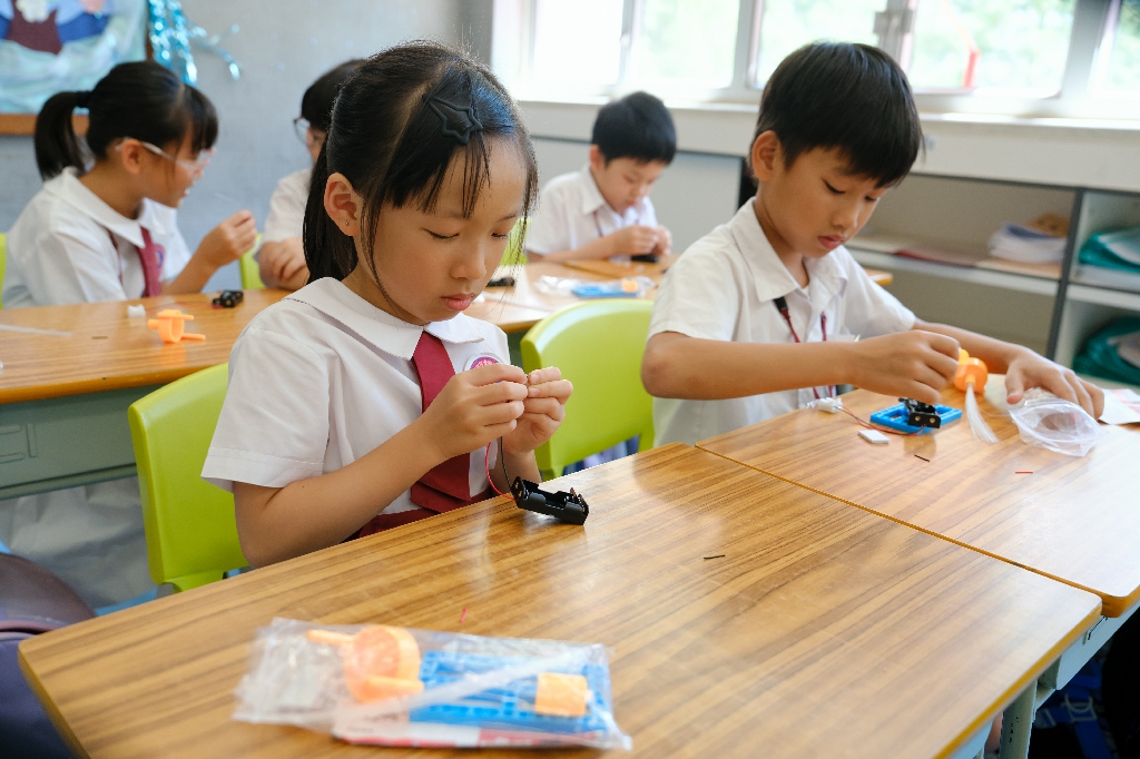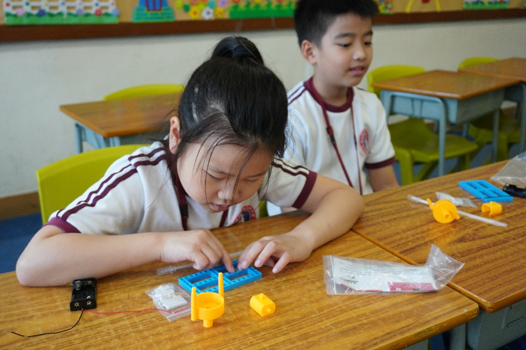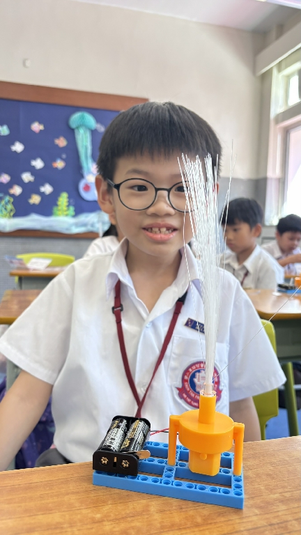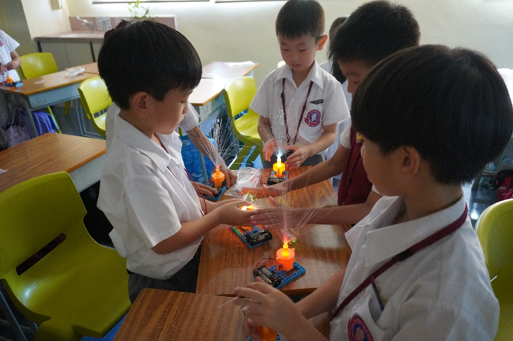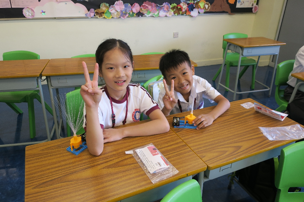 配合常識科課題:自製玩具,學生動手製作新奇有趣的七彩噴射燈,訓練思考和創造力,並學習能量轉換的科學原理。學生製作七彩噴射燈時能享受當中的樂趣。