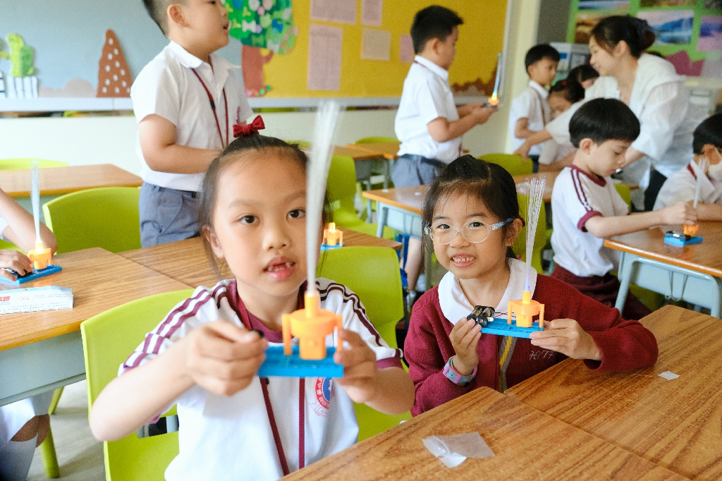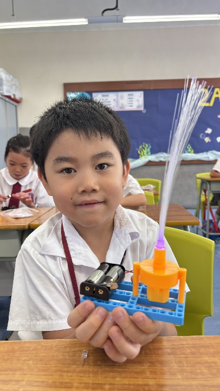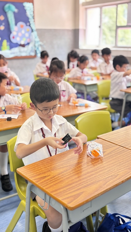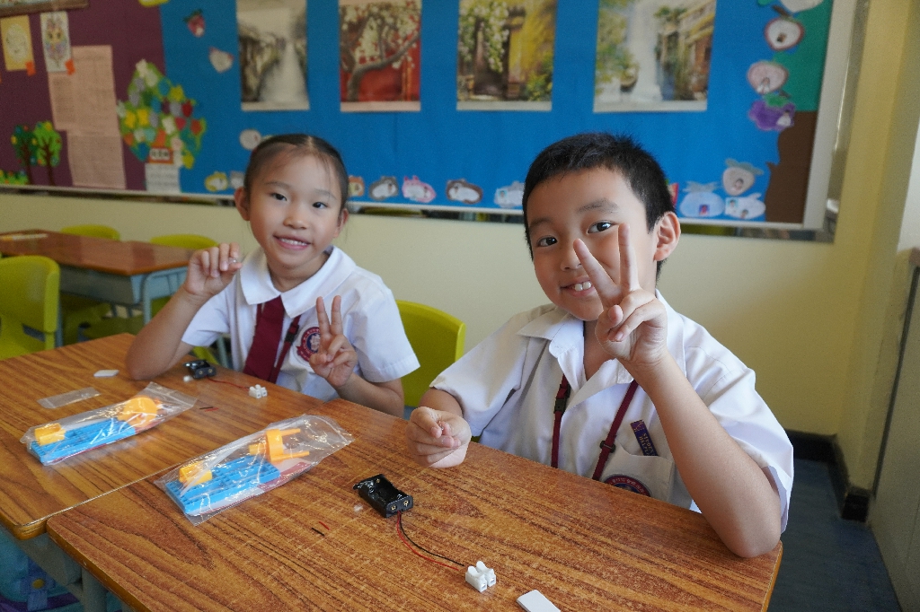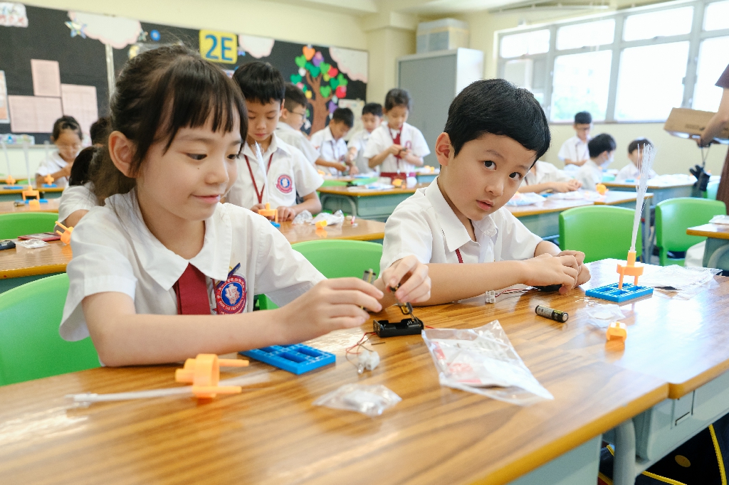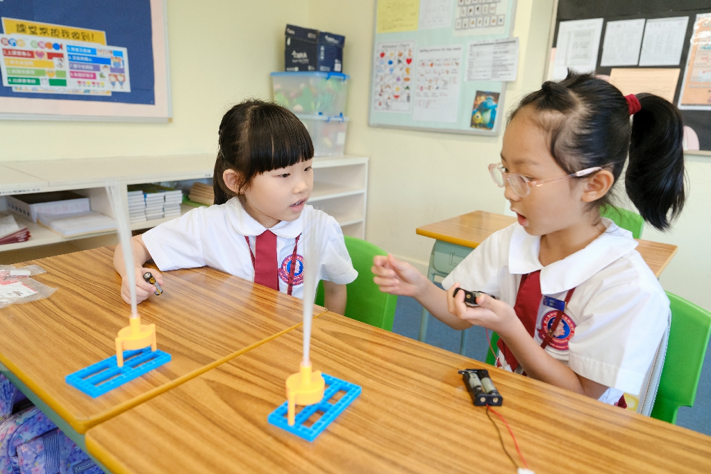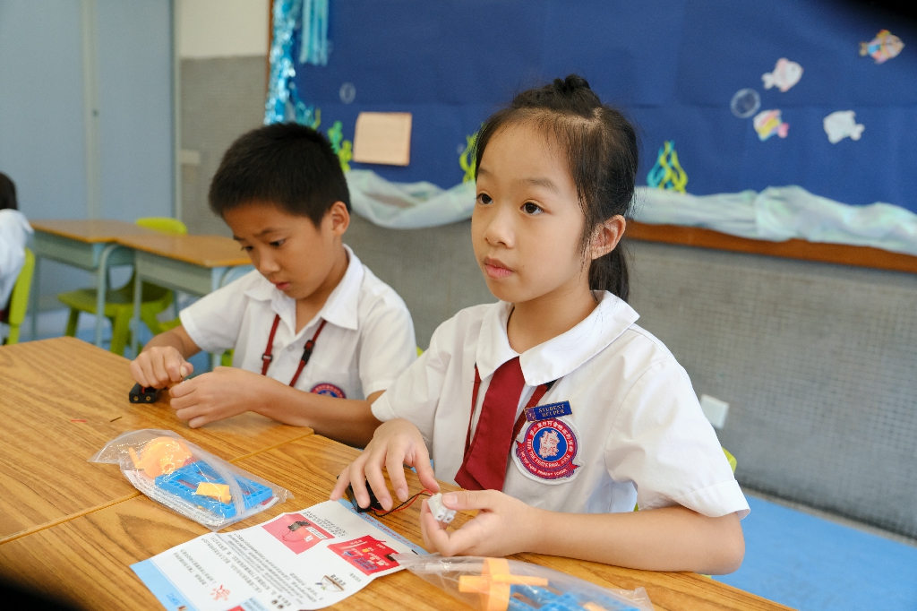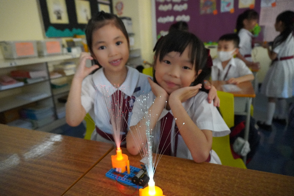 配合常識科課題:自製玩具,學生動手製作新奇有趣的七彩噴射燈,訓練思考和創造力,並學習能量轉換的科學原理。學生製作七彩噴射燈時能享受當中的樂趣。