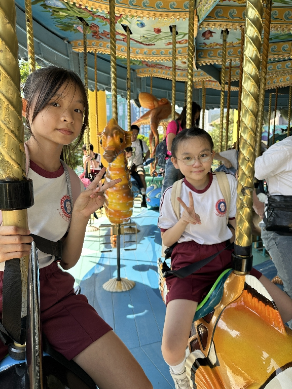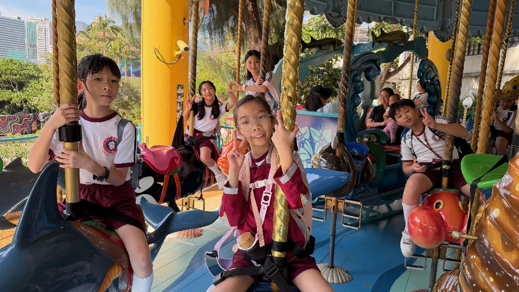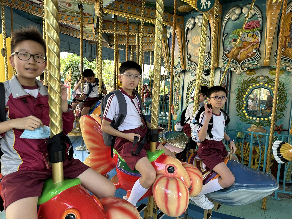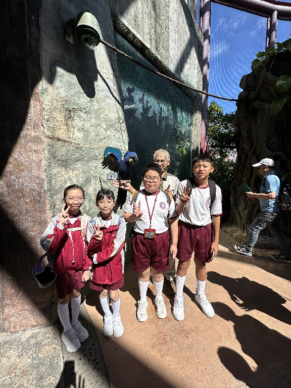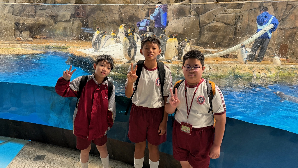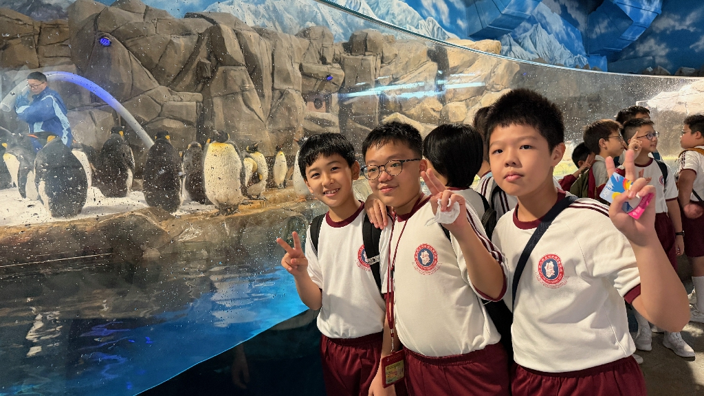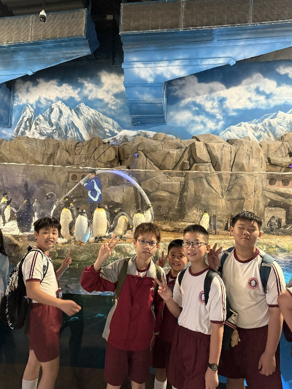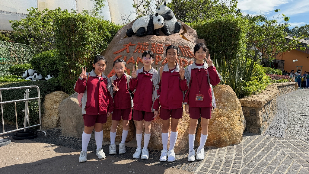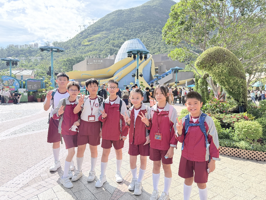 為配合常識科課題:動物與環境,本校特意安排六年級學生於11月12日參加香港海洋公園「賽馬會大熊貓探索之旅」。透過參觀「大熊貓之旅」和「香港賽馬會四川奇珍館」,讓學生近距離接觸大熊貓龍鳳胎:加加和得得,以及樂樂、盈盈、安安和可可,認識保護大熊貓及其棲息地的方法;同學們更觀賞了各種海洋生物,明白海洋生態系統的重要性,提升環境保護意識。
