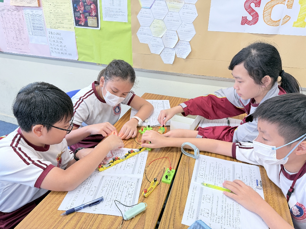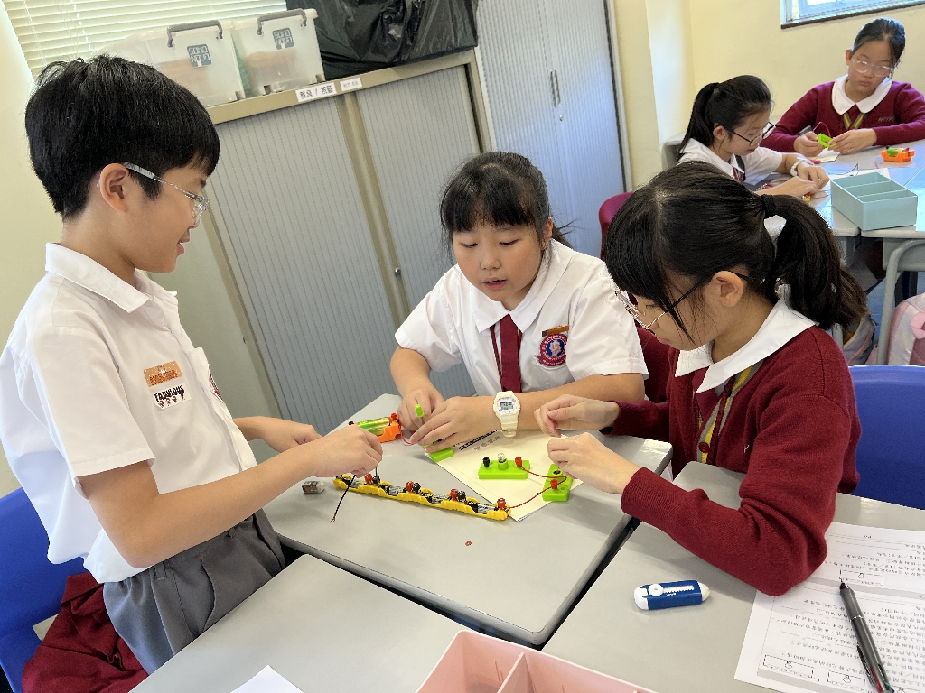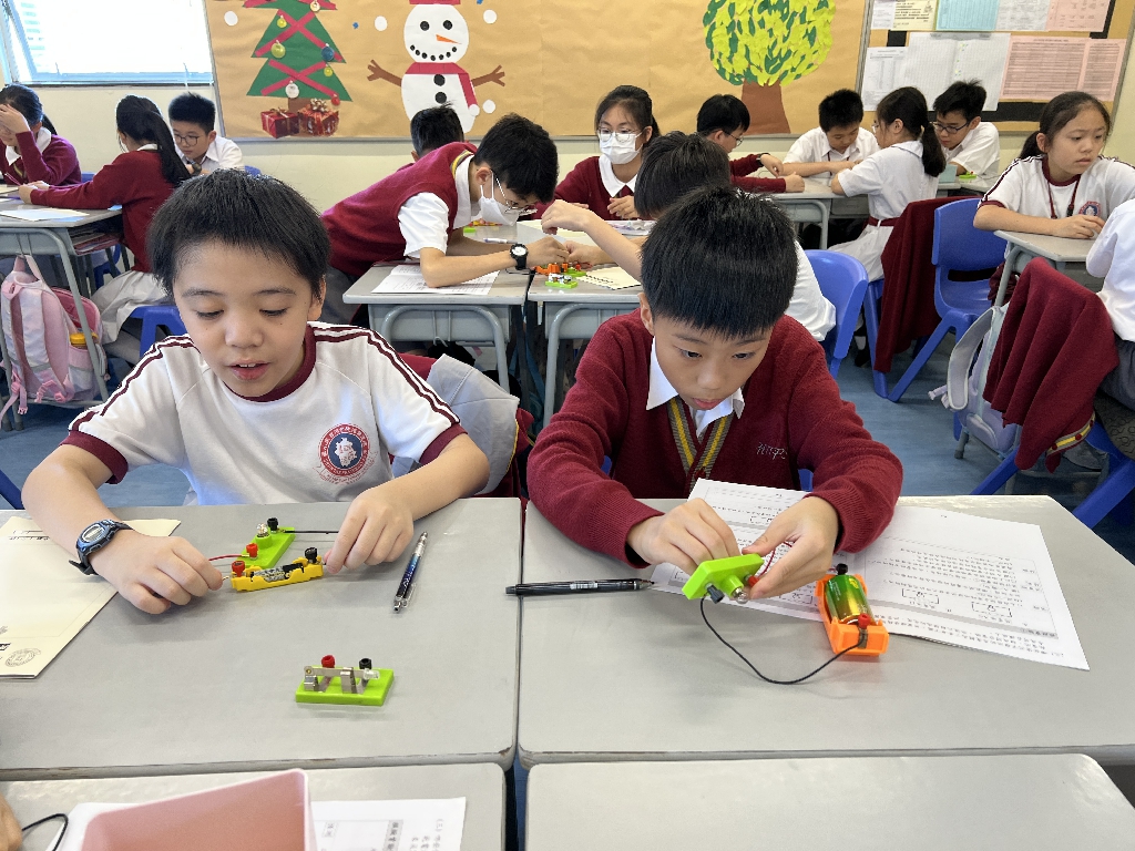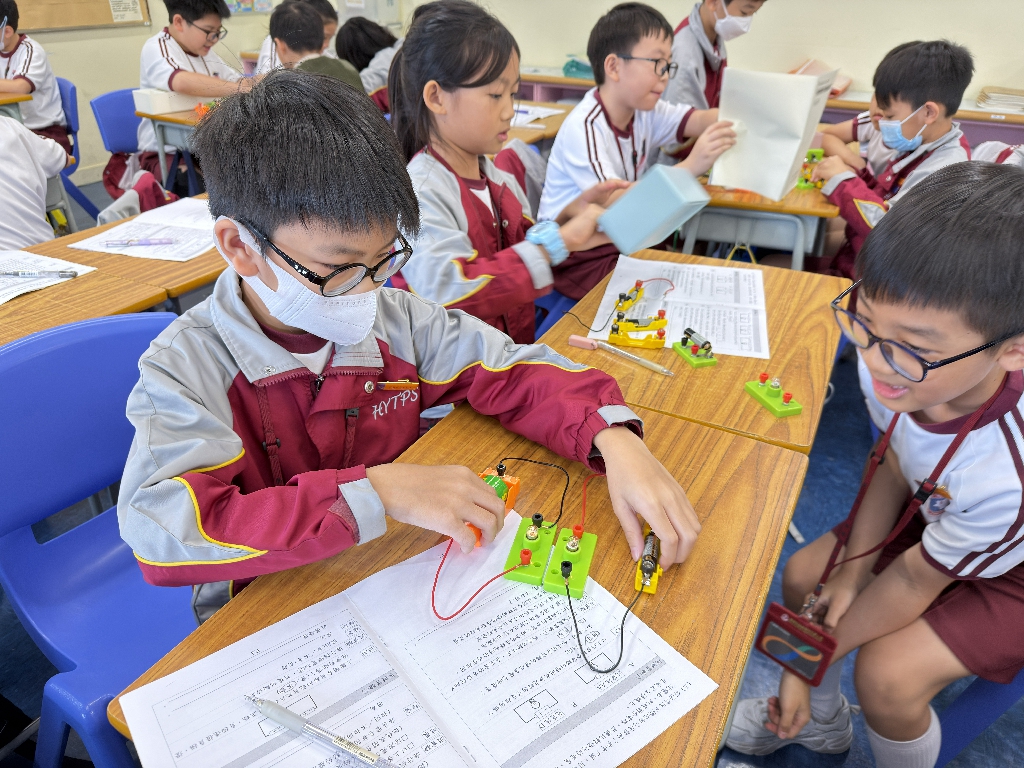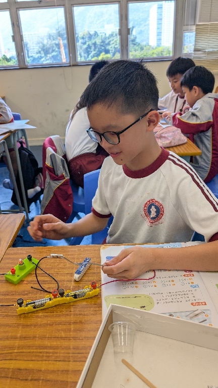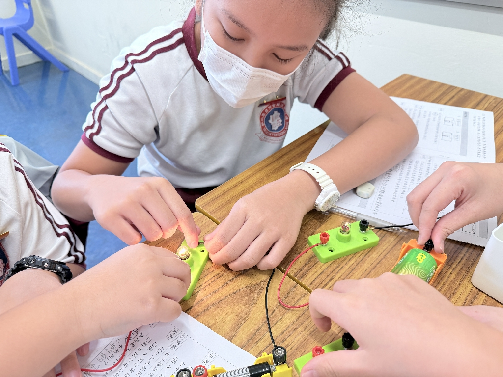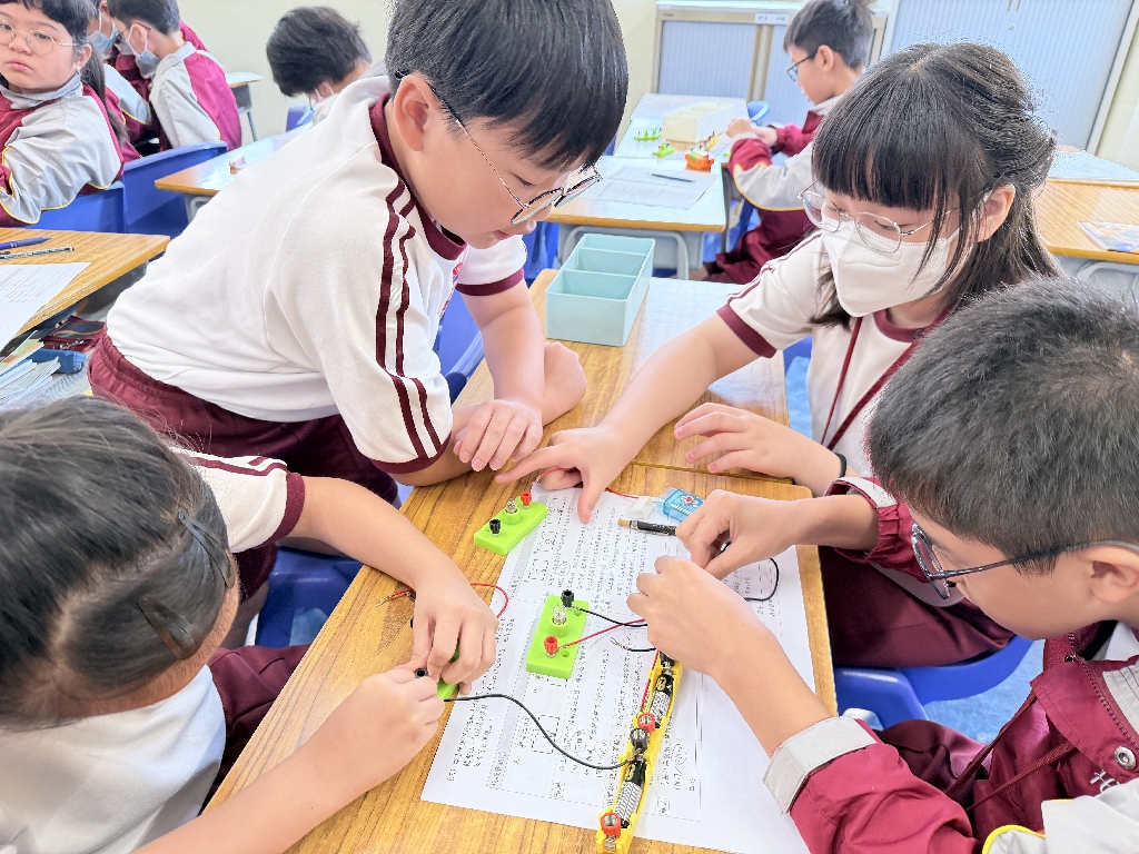 配合常識科課題「電的探究」及跨學科STREAM專題研習,學生分組進行實驗活動,在老師的引導下,學生學習閉合電路的科學原理。實驗活動中,學生手腦並用,認真學習。