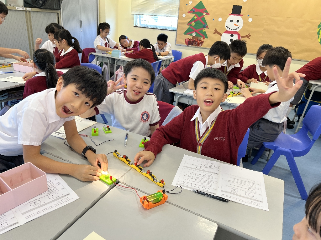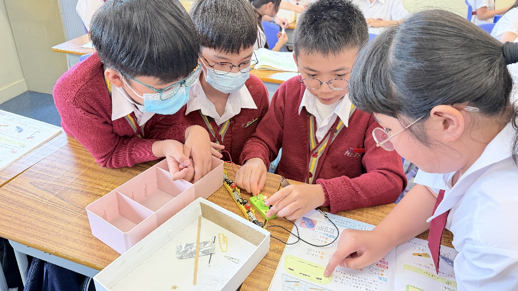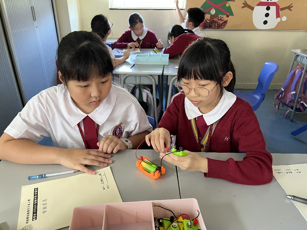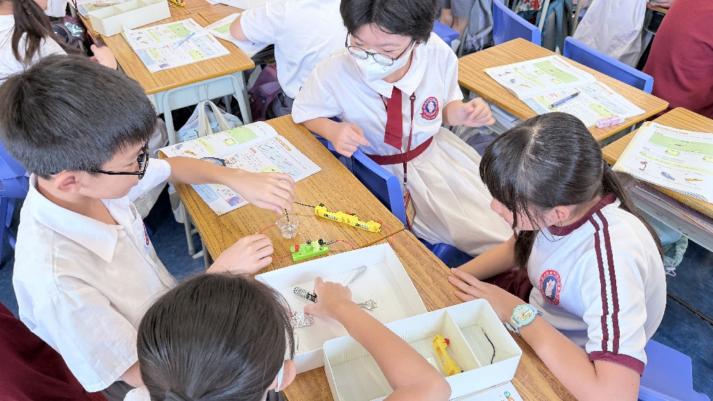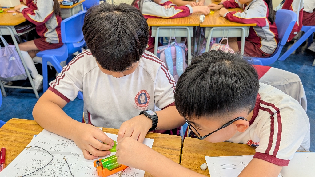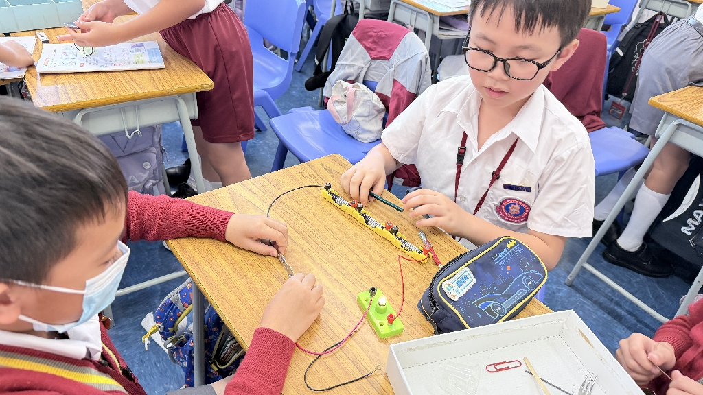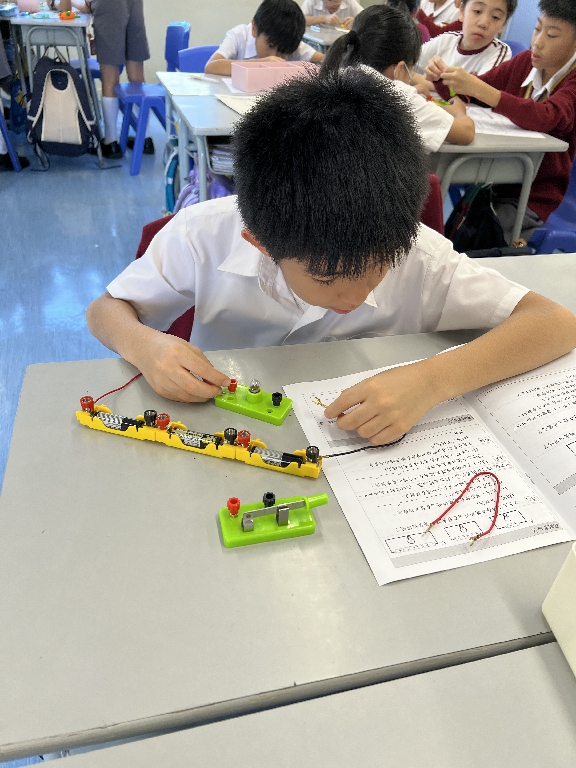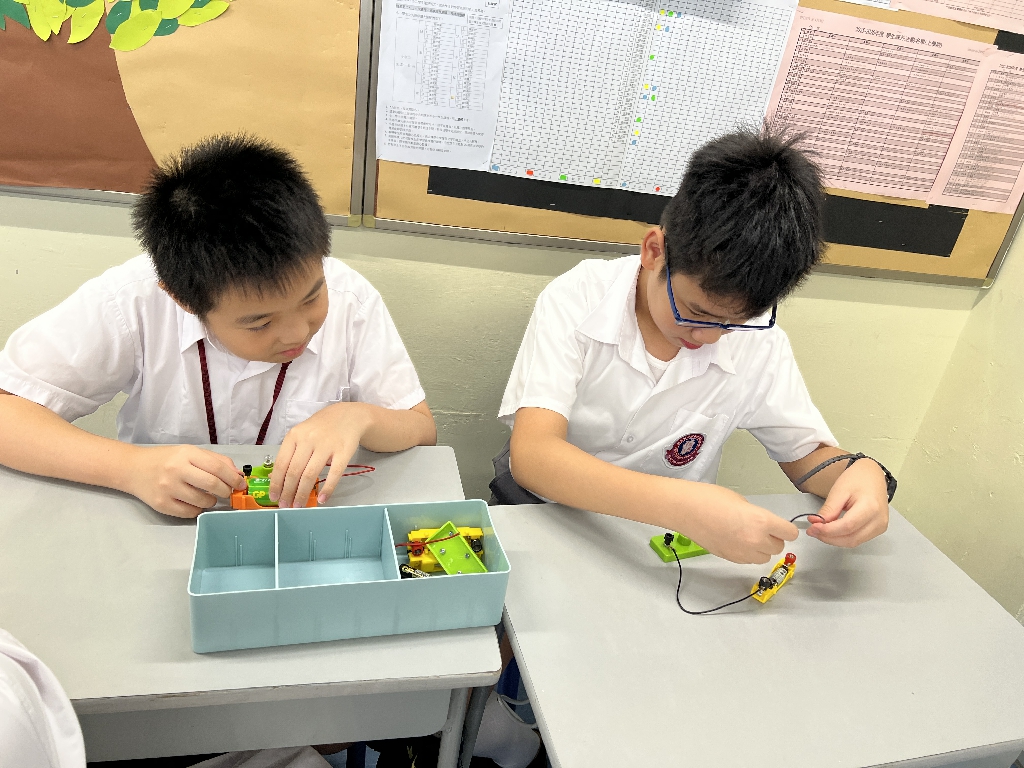配合常識科課題「電的探究」及跨學科STREAM專題研習,學生分組進行實驗活動,在老師的引導下,學生學習閉合電路的科學原理。實驗活動中,學生手腦並用,認真學習。