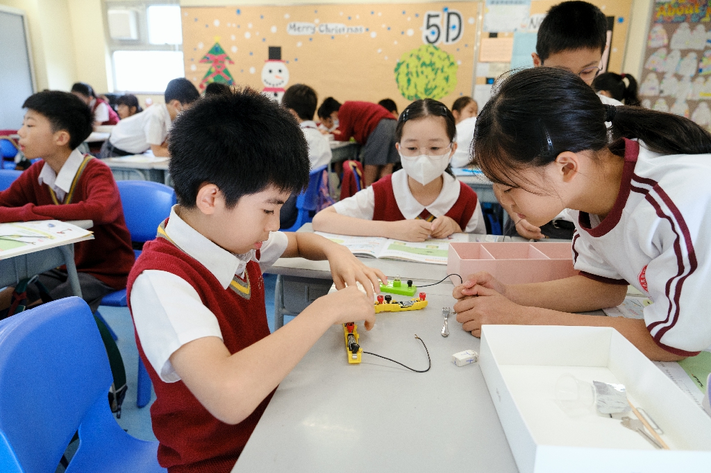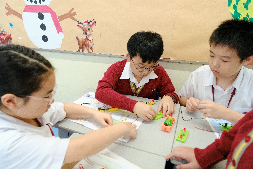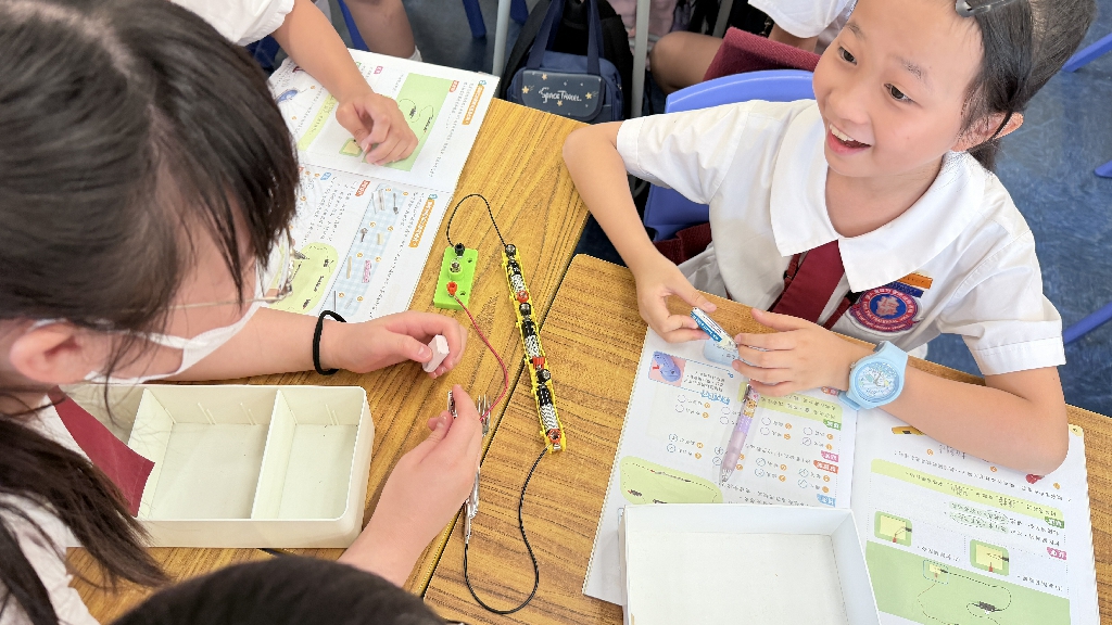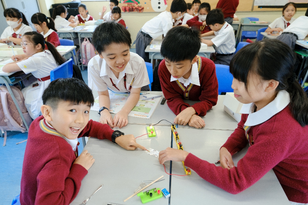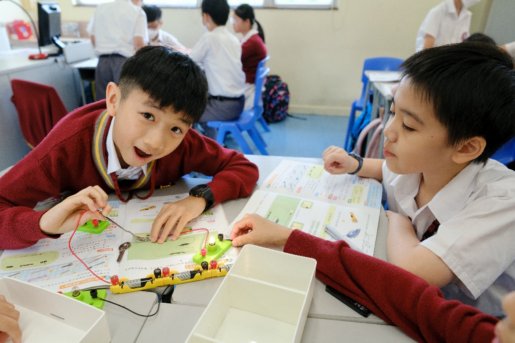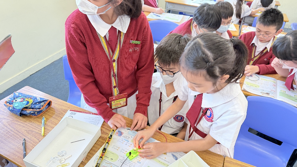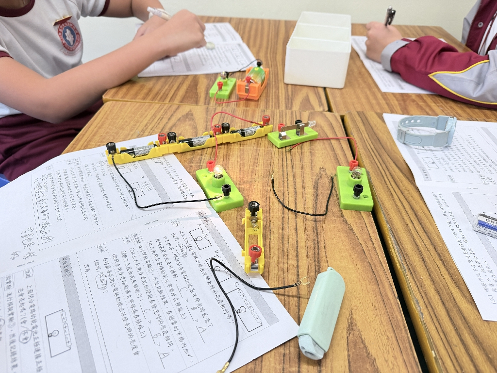 配合常識科課題「電的探究」及跨學科STREAM專題研習,學生分組進行實驗活動,在老師的引導下,學生學習閉合電路的科學原理。實驗活動中,學生手腦並用,認真學習。