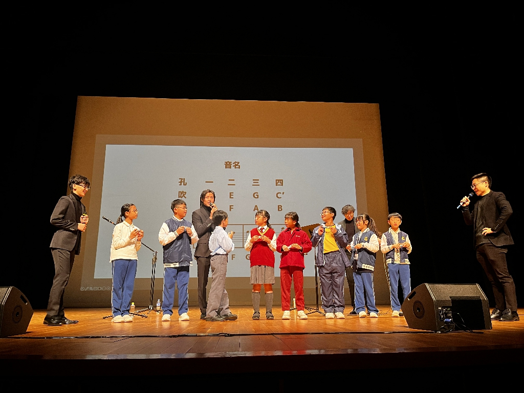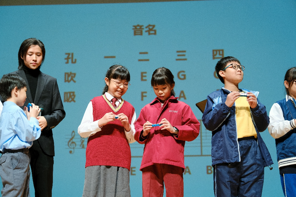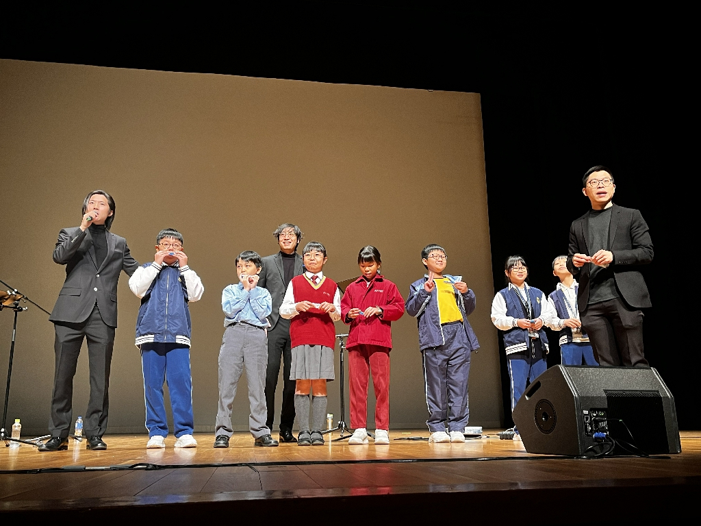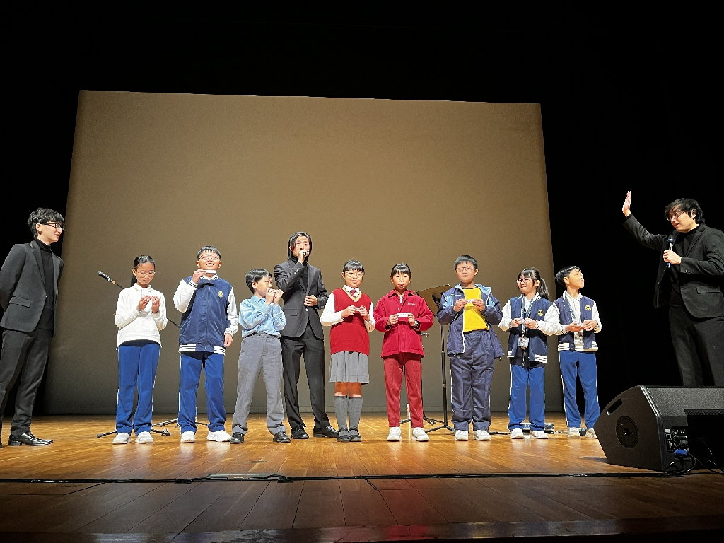 四年級全體同學於11月27日(星期四)前往屯門大會堂演奏廳參加何卓彥 x Perfect Fourth「簧域展開」口琴導賞音樂會。同學們沉浸式欣賞了風格多樣的口琴演奏曲目,充分感受口琴音樂的獨特魅力。其間,音樂家通過講解與互動體驗,向同學們系統科普了口琴的起源、種類及演奏技巧,有效拓寬了學生的藝術視野,進一步提升了音樂素養。值得一提的是,我校兩位同學和他校的數位學生有幸被現場挑選,在音樂家的指導下即場學習口琴基礎演奏技巧,並與演奏家同台合作演出,充分展現了我校學生的自信心與學習能力,獲得現場師生及藝術家的一致好評。