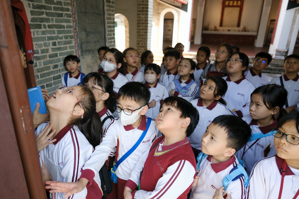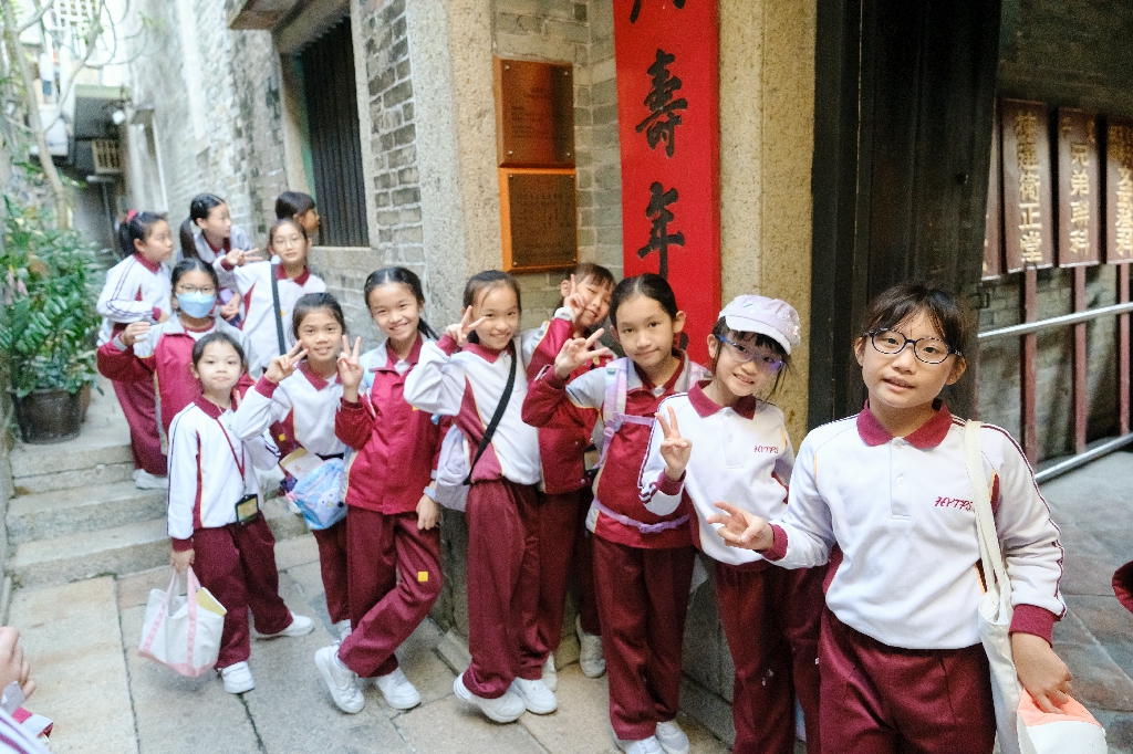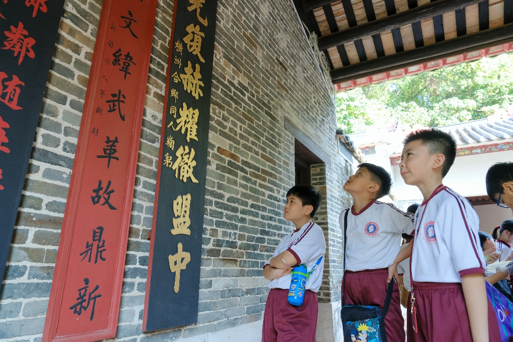 為配合人文科四年級「宋、元放大鏡」單元教學內容,老師帶領四年級學生走出教室,深入圍村,穿過窄巷,來到鄧氏宗祠、覲廷書室等古蹟前,探索昔日原居民的生活面貌。通過屏山文物徑參觀活動,同學們了解到宋朝時期的香港面貌,並加深了對中國傳統文化的認識!