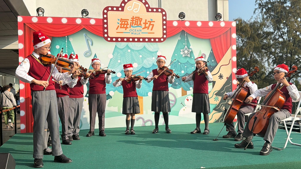 活動當日,弦樂團與10位初級合唱團成員們精神飽滿,以專業的姿態登臺表演。現場掌聲此起彼伏,屯門區的居民們駐足聆聽,紛紛拿出手機記錄這温馨時刻。樂聲與歌聲交織,不僅為商場營造出濃厚的聖誕節慶氛圍,更向屯門區居民傳遞了來自本校師生的節日問候與美好祝福。
