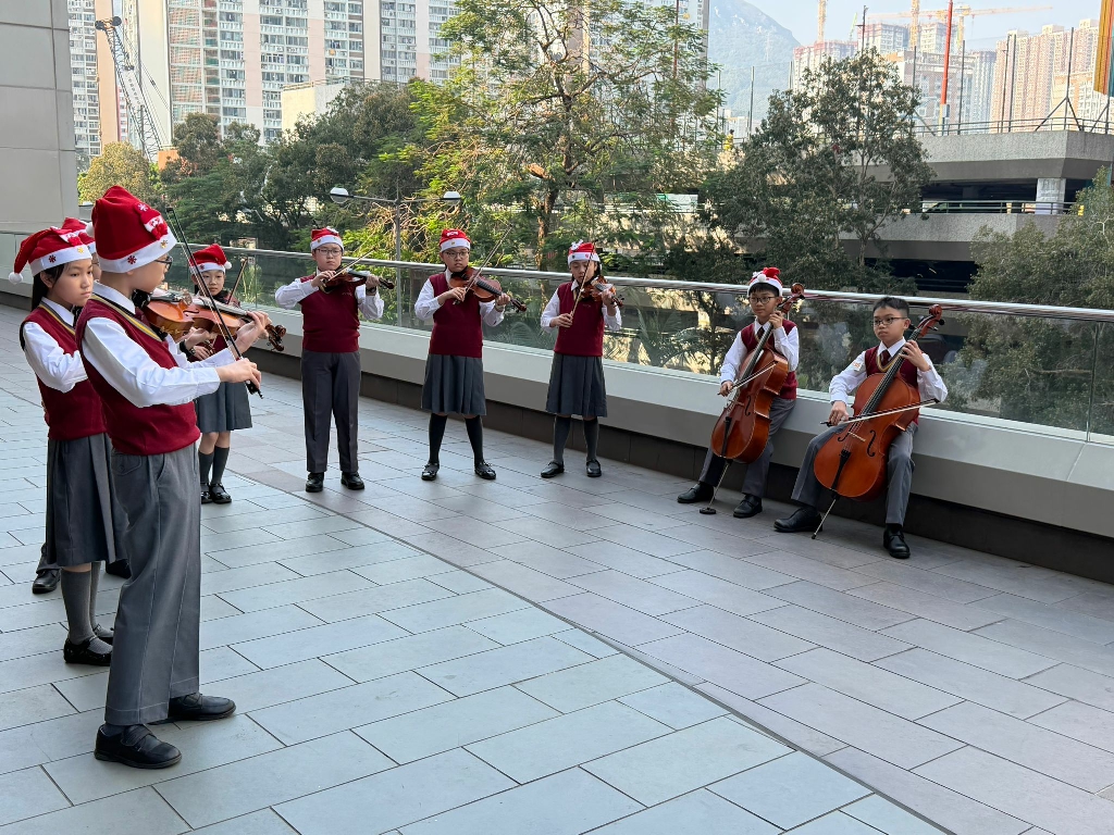 本校弦樂團及初級合唱團受邀走進屯門商場,參與「聖誕表演活動」,為現場市民帶來一場充滿節日氛圍的音樂盛宴。
