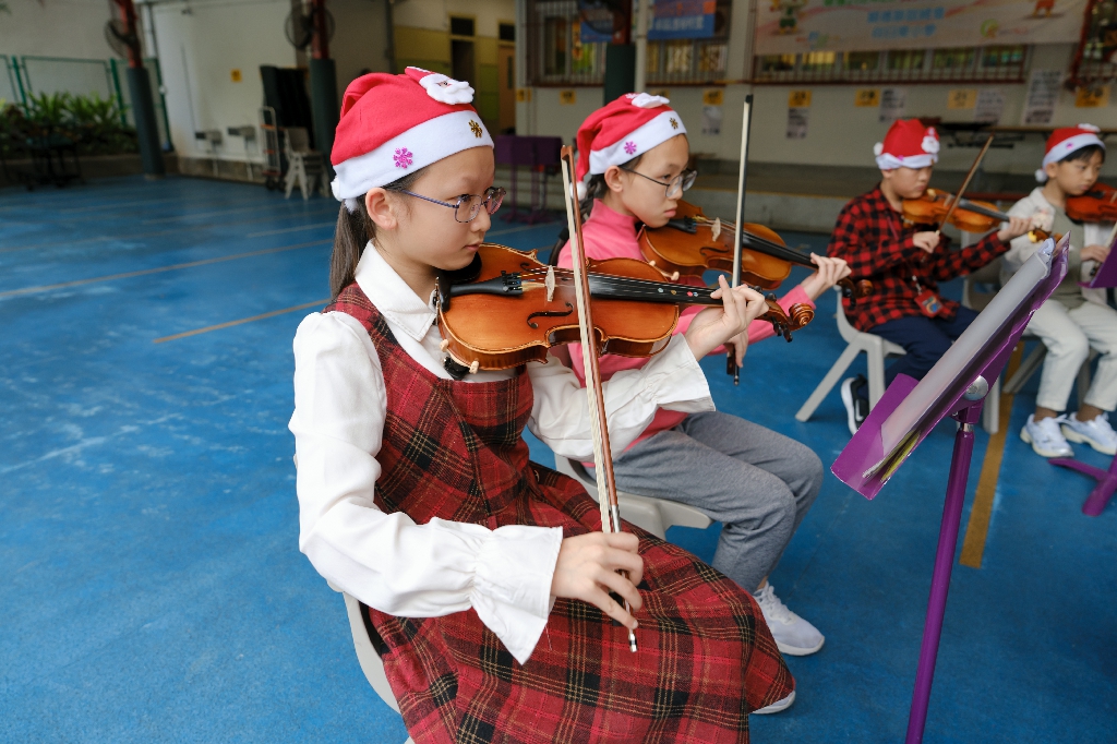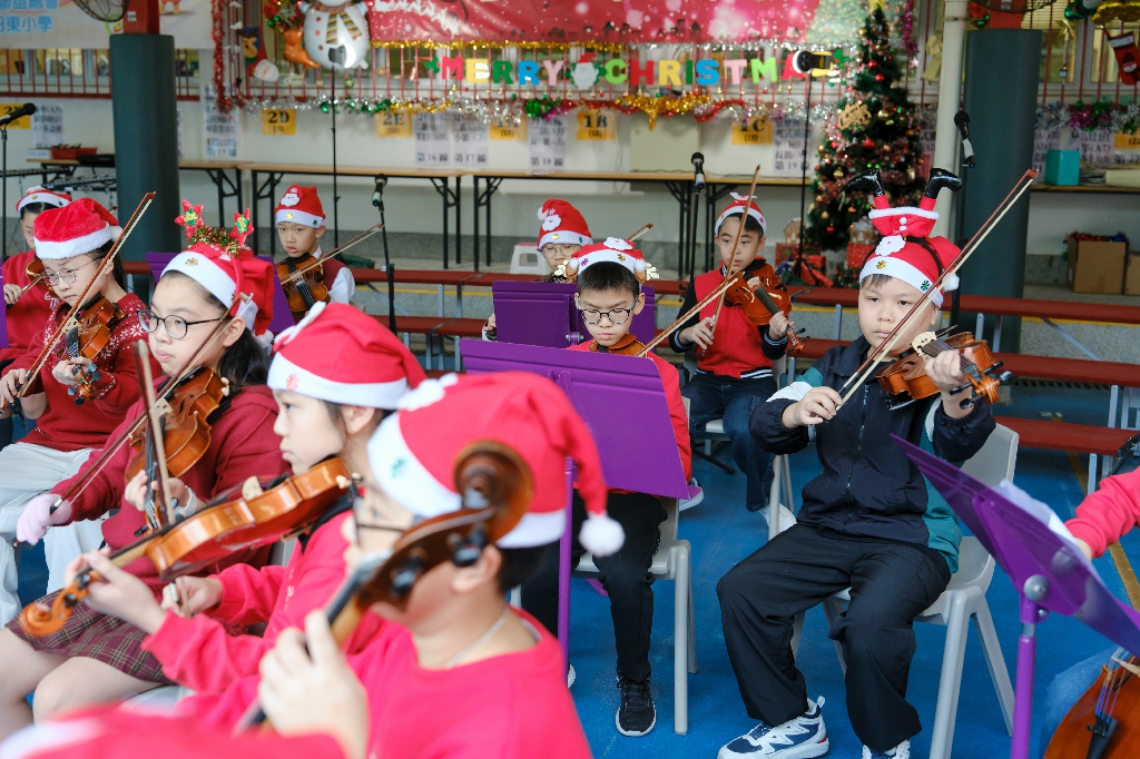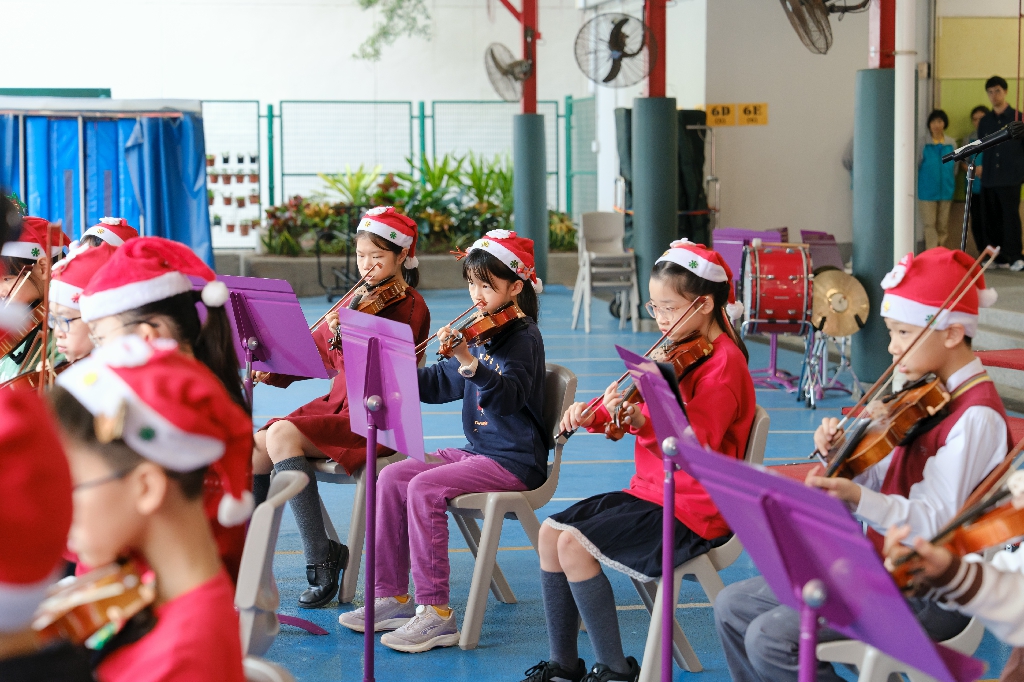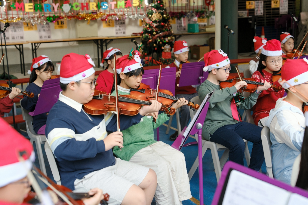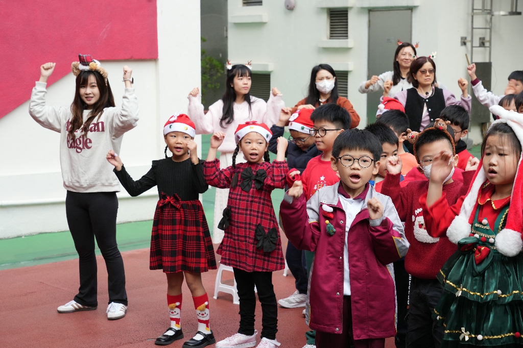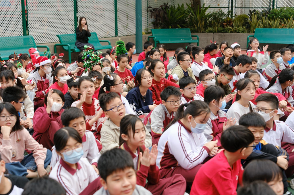 學生都十分投入參與活動及欣賞表演。除了精彩的表演環節外,還有趣味遊戲互動、聖誕老人和師生一起跳舞助慶,最後全校師生一起大合唱聖誕歌We Wish You a Merry X’mas,互相祝福,將聖誕氣氛推致高峰,學生投入及積極參與。精彩的音樂會後,師生一起在課室舉行聖誕派對及遊戲,共渡一個充滿感恩.關愛的聖誕!
