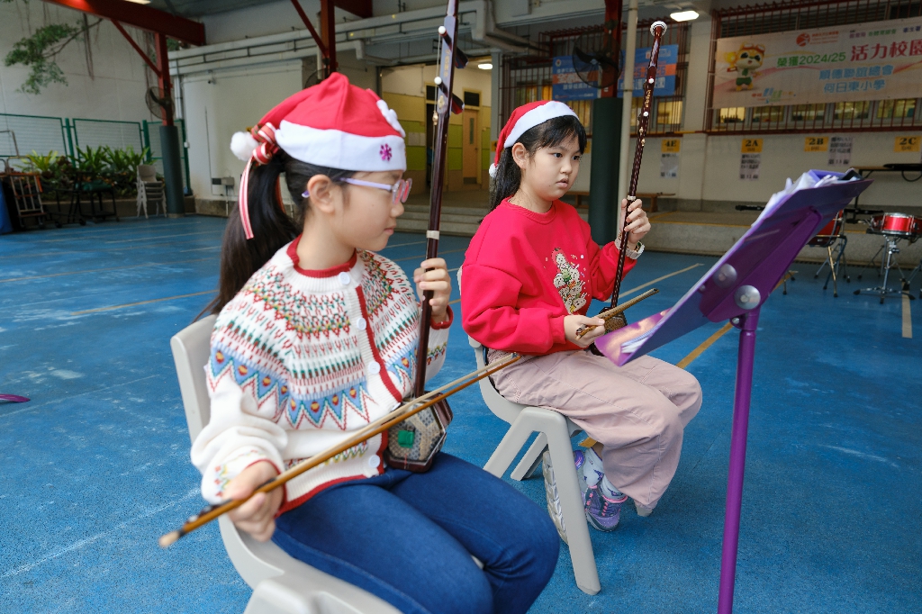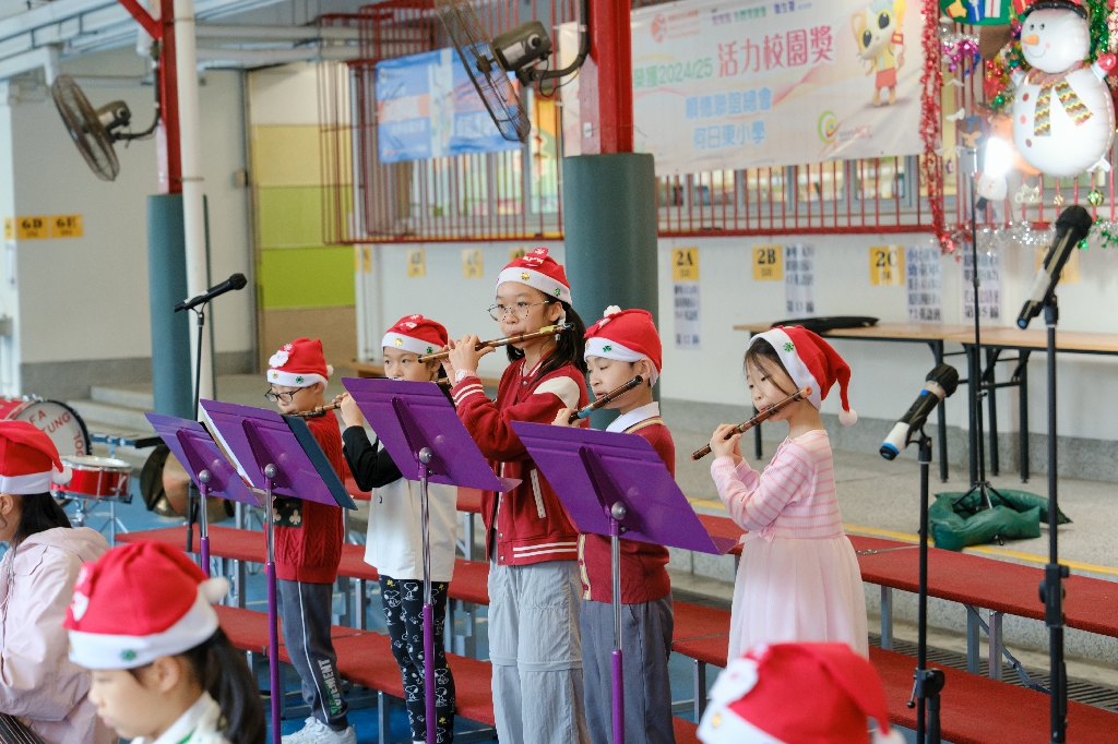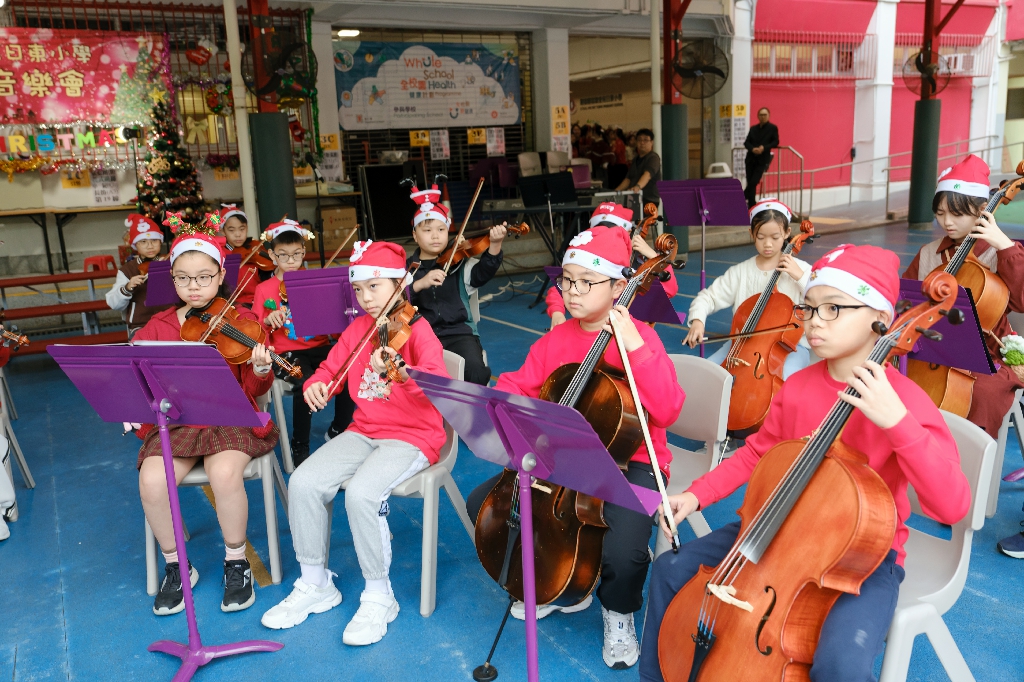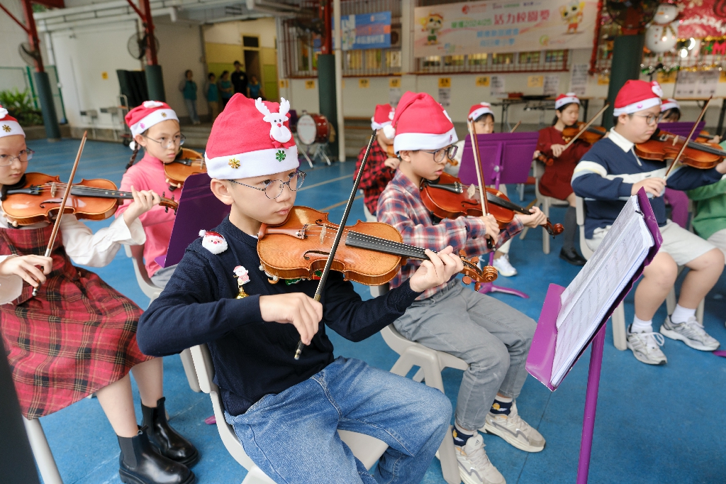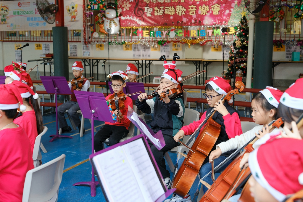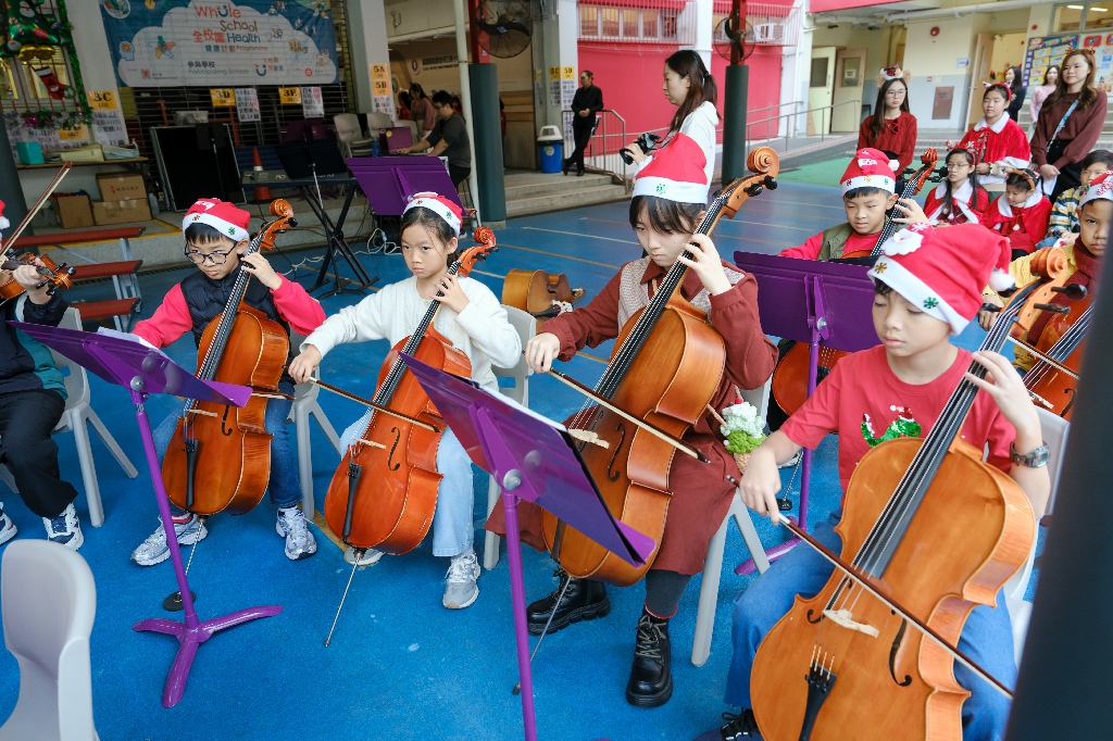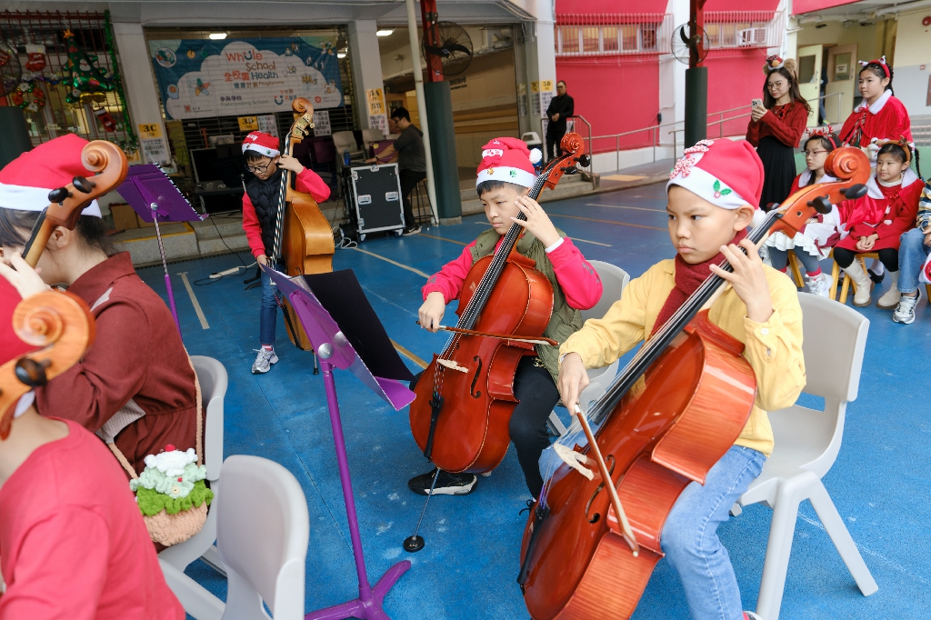 學生都十分投入參與活動及欣賞表演。除了精彩的表演環節外,還有趣味遊戲互動、聖誕老人和師生一起跳舞助慶,最後全校師生一起大合唱聖誕歌We Wish You a Merry X’mas,互相祝福,將聖誕氣氛推致高峰,學生投入及積極參與。精彩的音樂會後,師生一起在課室舉行聖誕派對及遊戲,共渡一個充滿感恩.關愛的聖誕!