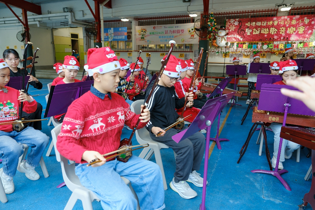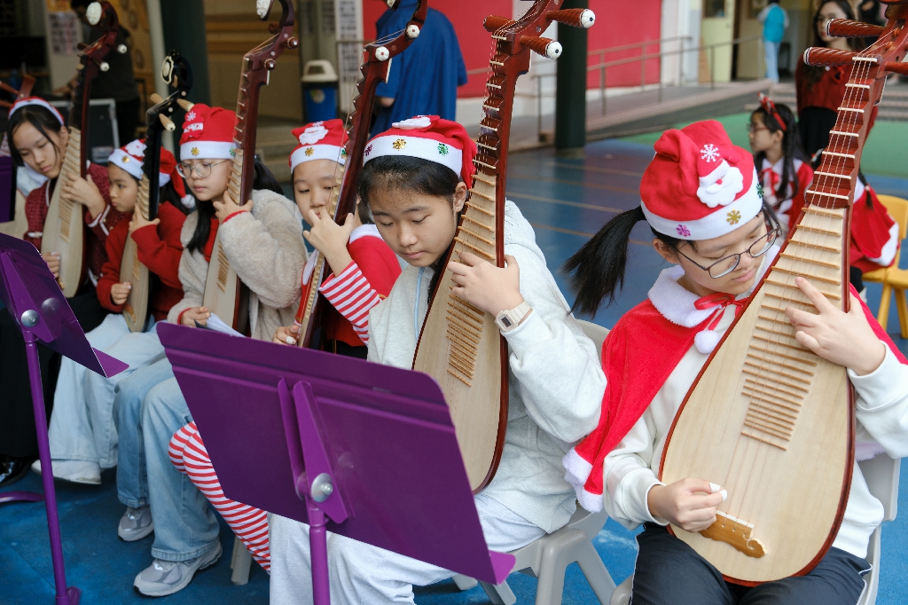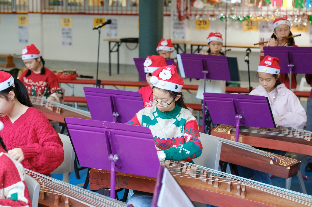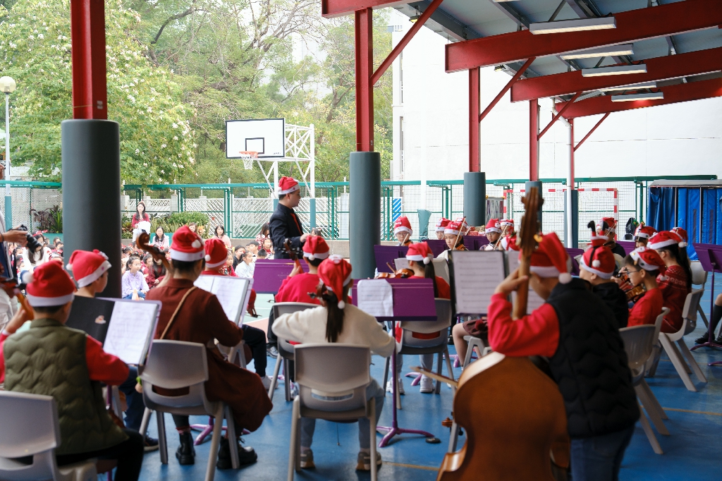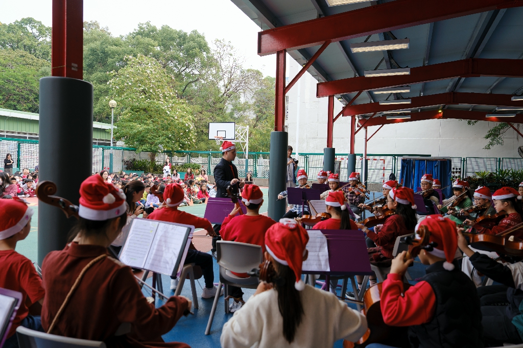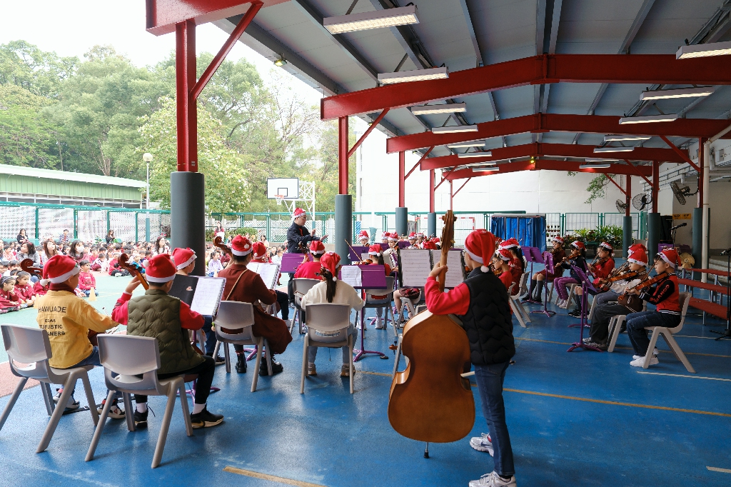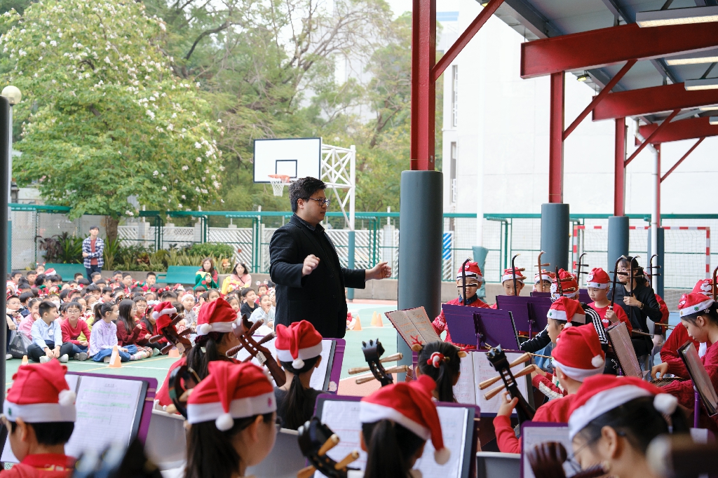 又到聖誕! 又到聖誕! 學生期待的聖誕音樂會終於來臨。當天全體師生在操場參與「聖誕音樂會」。今年主題為「感恩.關愛」,音樂會內容豐富,有中樂團、管樂團、弦樂團、初級及高級合唱團的學生為大家表演美妙的聖誕樂章,展現本校藝術教育的豐碩成果。