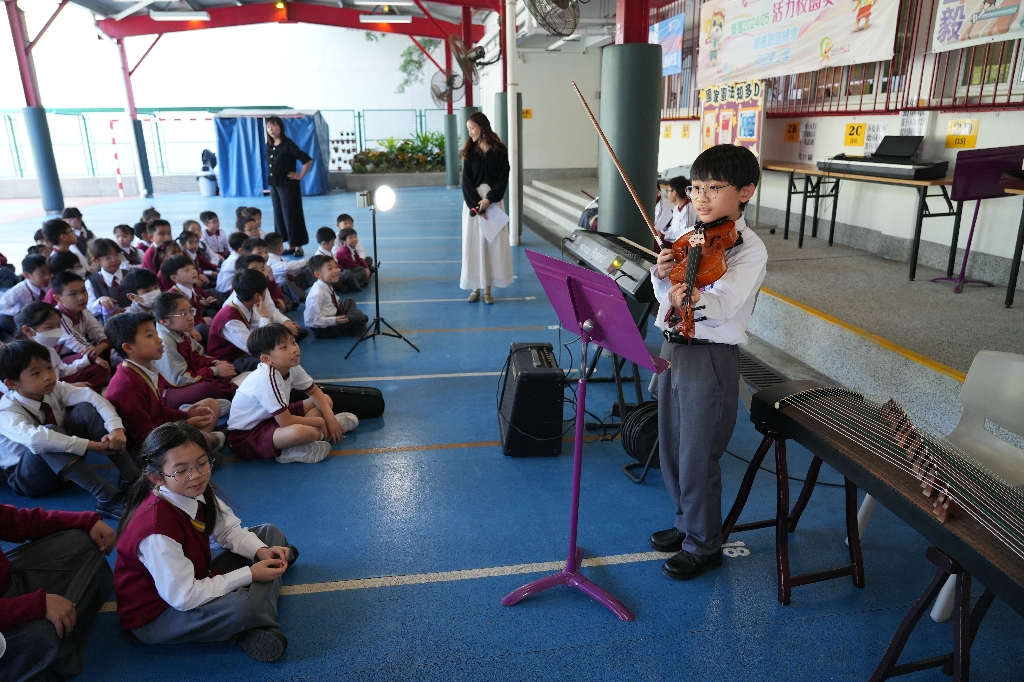 展藝坊圓滿舉辦,學生獨奏大放異彩 本校順利開展一至六年級展藝坊活動,每班安排一個樂器獨奏的節目。活動當天,同學們不僅呈現了豐富多彩的學習成果,更在互動交流中鍛煉了表達能力與自信心。 此次展藝坊活動不僅為各年級學生提供了展示自我的平台,更推動了校園藝術氛圍的營造,體現了本校注重學生全面發展、鼓勵個性成長的教育理念。