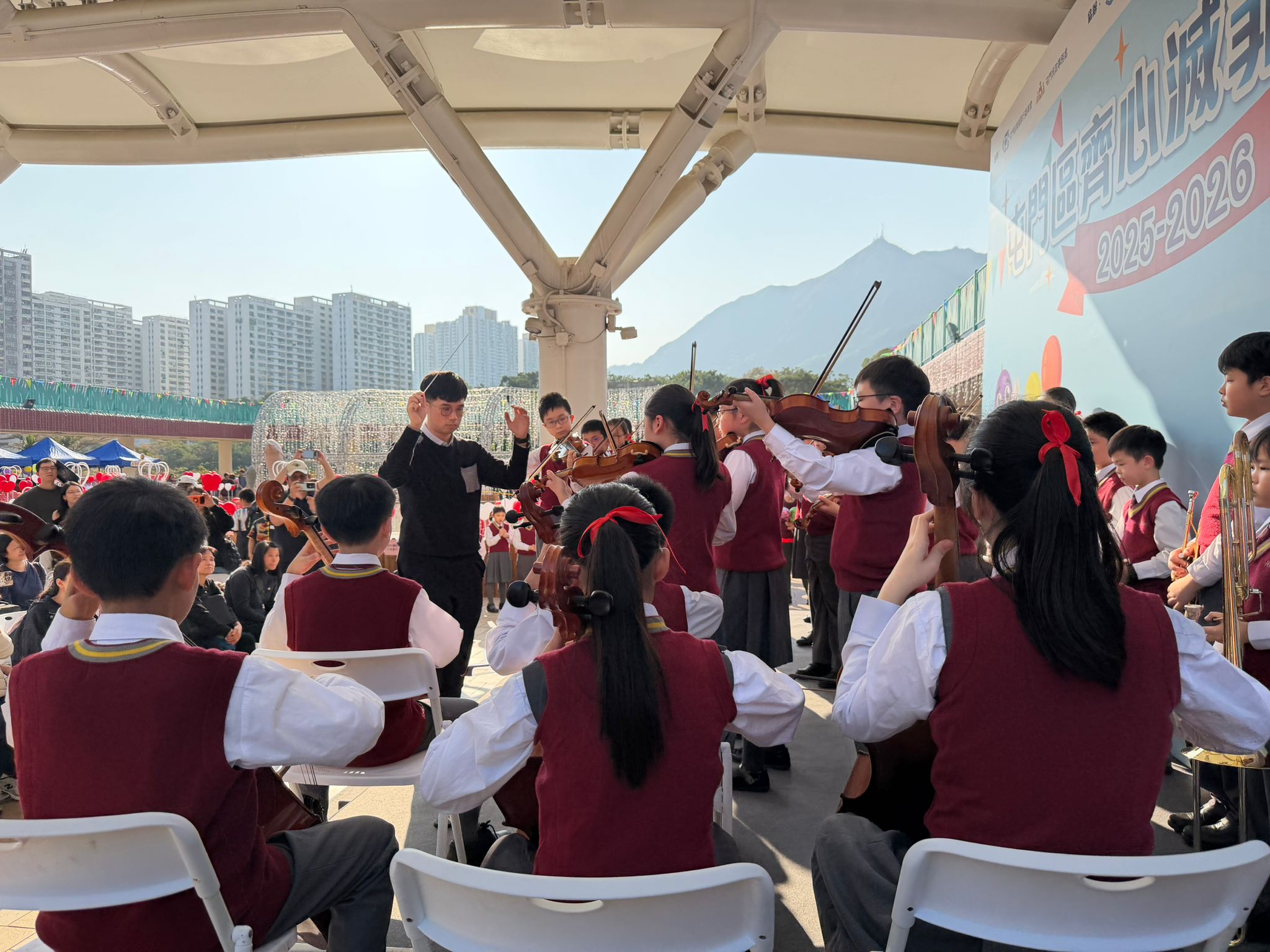 本校管弦樂團及合唱團於1月18日獲屯門區撲滅罪行委員會邀請,參與「屯門區齊心滅罪嘉年華」綜藝表演。當日由人才濟濟的管弦樂團演奏動人的古典樂章及可愛的合唱團成員演唱優美的歌曲,得到現場觀眾及家長熱烈的掌聲,同學們共聚一個有意義及發放正能量的表演活動。
