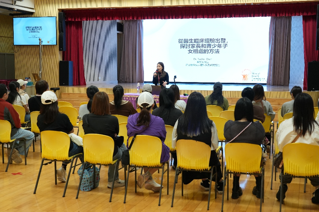 本校邀請了精神科專科醫生陳奕彤女士講解有關青少年的心理和行為特點;分享如何有效地運用溝通策略來面對與子女之間的相處,從而建立親子之間的信任和支持,減少出現衝突或關係疏離的局面,並為家長提供有用資源與求助途徑。