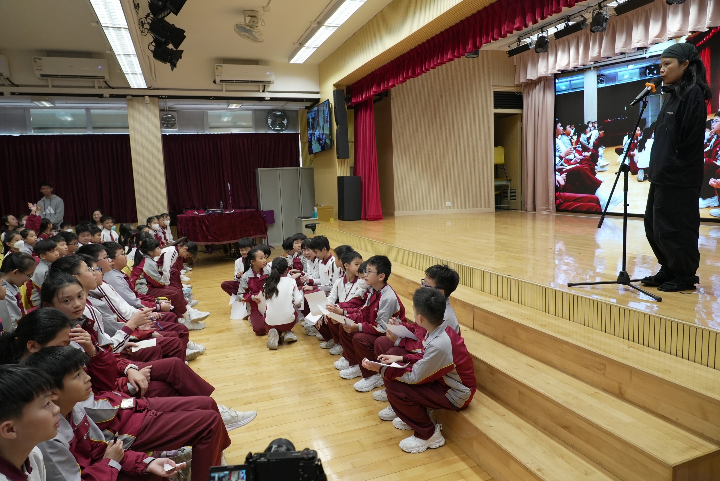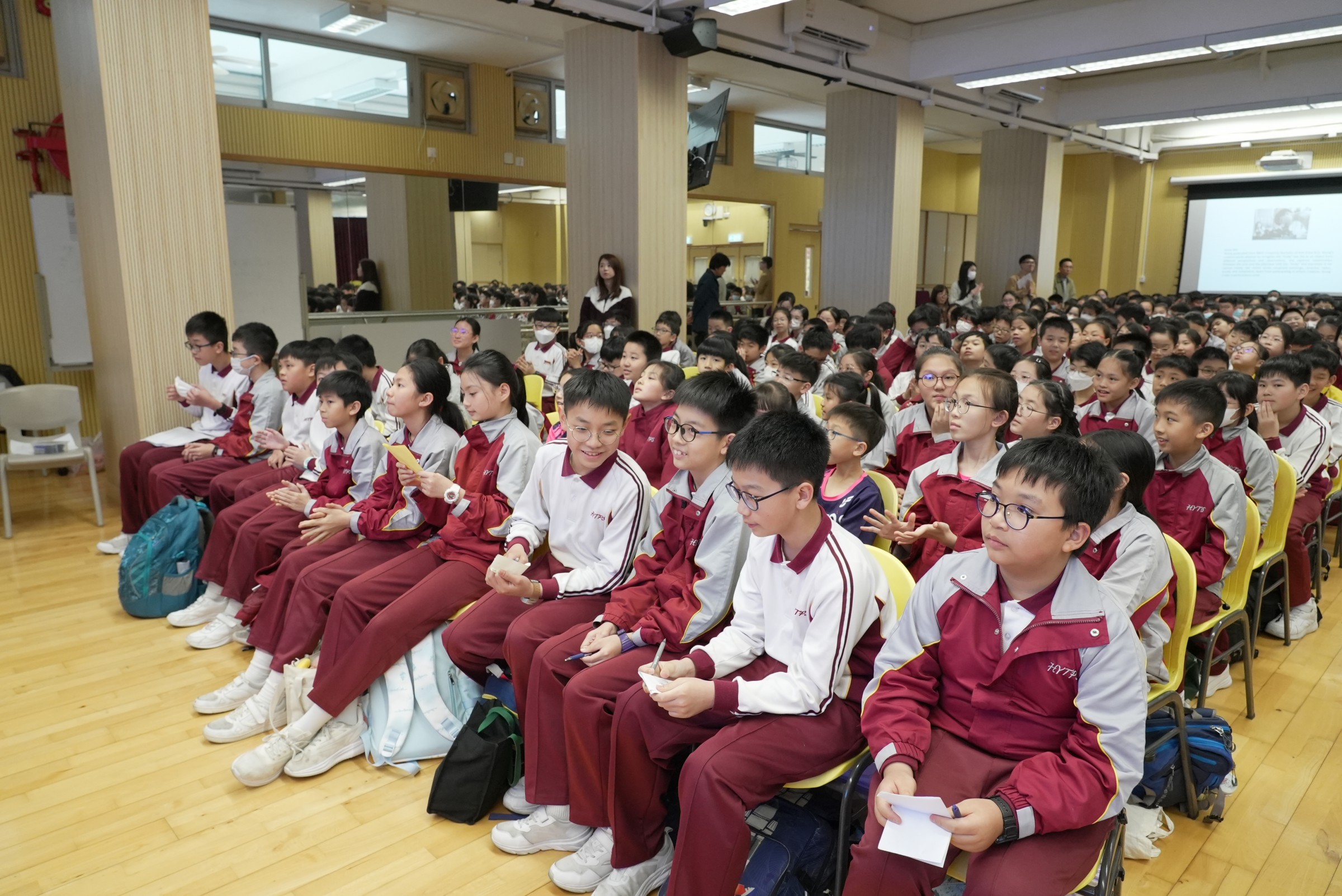 本校於3月9日11日邀請楊小芳小姐到校為全校學生舉行「《足以自豪》運動員及藝術家楊小芳小姐分享會—芳夢飛翔」,透過其成長經歷,包括:因8歲遇上一次意外引致失去雙手的經過、克服接受醫療的過程、在香港讀書的經歷、從小父母親鼓勵學會照顧自己、面對日常生活的挑戰、接受專業運動的訓練代表香港出戰亞洲運動會和用雙腳開啟藝術創作的經歷等,鼓勵學生積極面對人生。透過體驗活動,學生除了可以感受限制雙手活動的困難外,更學會與人合作和團結的重要。為表達感謝楊小芳小姐到校分享豐富珍貴的人生經驗,展現堅毅和正能量,四至六年級學生獻唱綜藝表演會主題歌曲(Spark of Me),並配以兩位六年級學生用結他及木箱鼓伴奏,以生命影響生命,場面十分感動,學生也獲益良多。