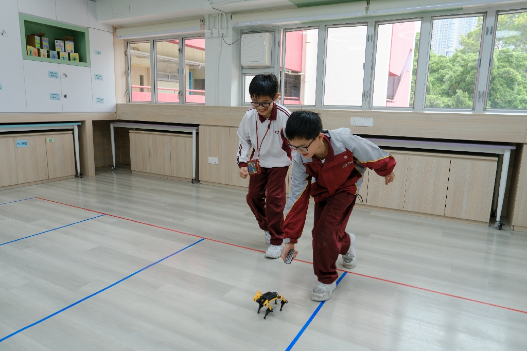 本校獲創新科技及工業局數字政策辦公室小學「奇趣IT識多啲」計劃資助,舉辦資優培訓課程:「AI機械狗及氫能車班」,積極推動STEAM教育。學生透過富趣味的活動,例如組裝、編程及控制足球機械蛇、AI機械狗、循線機械智能小車及日本氫燃料電能車H2 Racer,學習創新科技及應用跨學科知識與技能,增強探索科學和科技的能力。