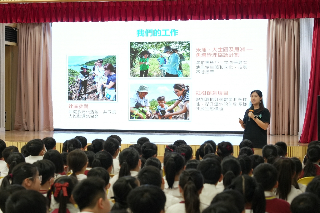 為了讓學生了解香港本地魚塘養殖過程及雀鳥生態、人類活動與大自然的互動關係,本校參加了由「香港濕地保育協會」及「香港管綫專業學會」主辦、「香港社建協會」協辦的「認識香港魚塘與濕地生態」專題講座,令師生們認識到生物多樣性和生態保育的概念,喚起大家對環境及可持續發展的關注。